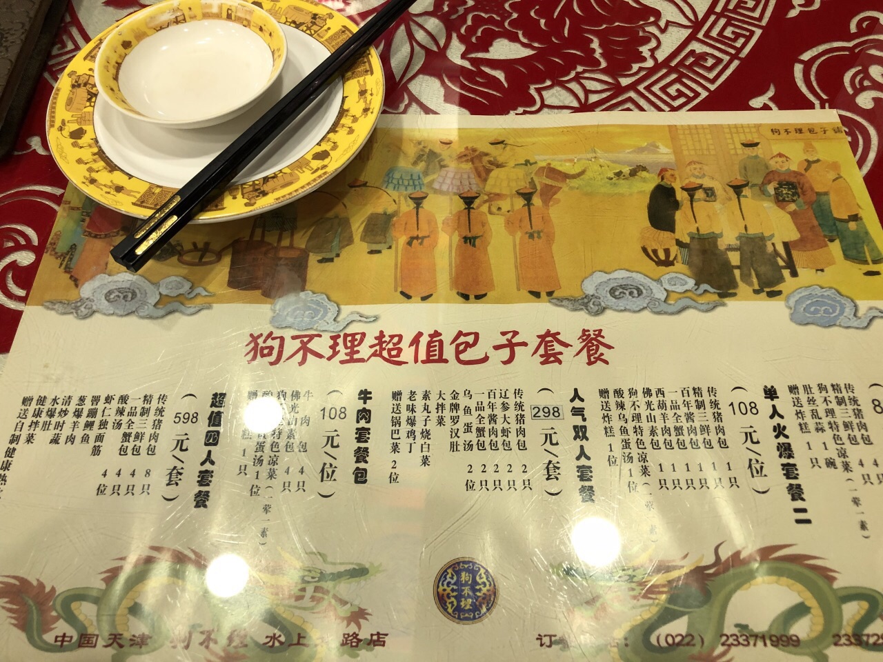 到天津不能不吃狗不理,选来选去选了水上公园旁边的好吃旗舰店。 【位置】离水上公园不远,在路边很好辨认,因为超级气派。。 【环境】环境非常华丽丽,不像吃包子的,像宫廷宴。。 【服务】服务跟名气,环境和价格完全不搭,要了个茶汤,碗上还沾着各种糊呢也不知道擦就直接给我上桌,讲真服务水准还不如路边摊。 【口味】这包子性价比真是低,不为了拔草真不回来吃,回去跟青旅的小伙伴说了还被当智障。。不够味道还行吧,比印象中好吃点,样子确实好看。看大多数人基本也只点了包子,估计都是只为尝鲜。