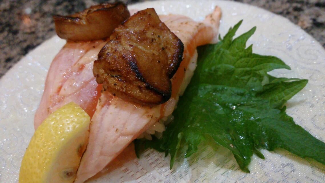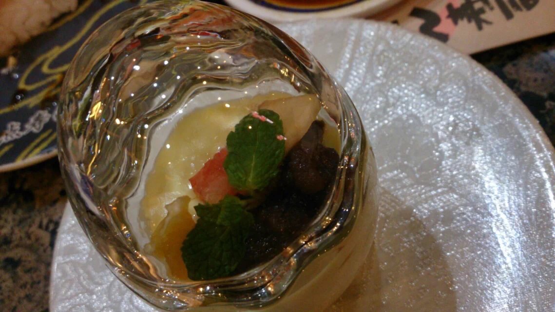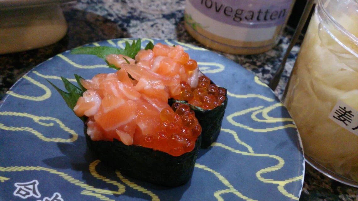 家门口的亲民回转寿司,想吃刺身的时候大伊会去这家。不想动脑筋点菜的天秤座可以有单人或双人套餐,然回转寿司的正确打开方式当然是要坐在回转台边看着美食排着队向你走来等你翻牌子。喜欢这种既视感,食物新鲜与否一目了然。推荐烤鹅肝寿司、三文鱼寿司、梅酒。大伊不是酒鬼好吗?吃生的来点酒杀菌的嘛!有人推荐梅酒加冰,大伊觉得女孩子吃生的还吃冰寒气太重,不好啦!蓝孩子请随便~甜点里的焦糖布丁不错,一口一个鸡蛋的赶脚。