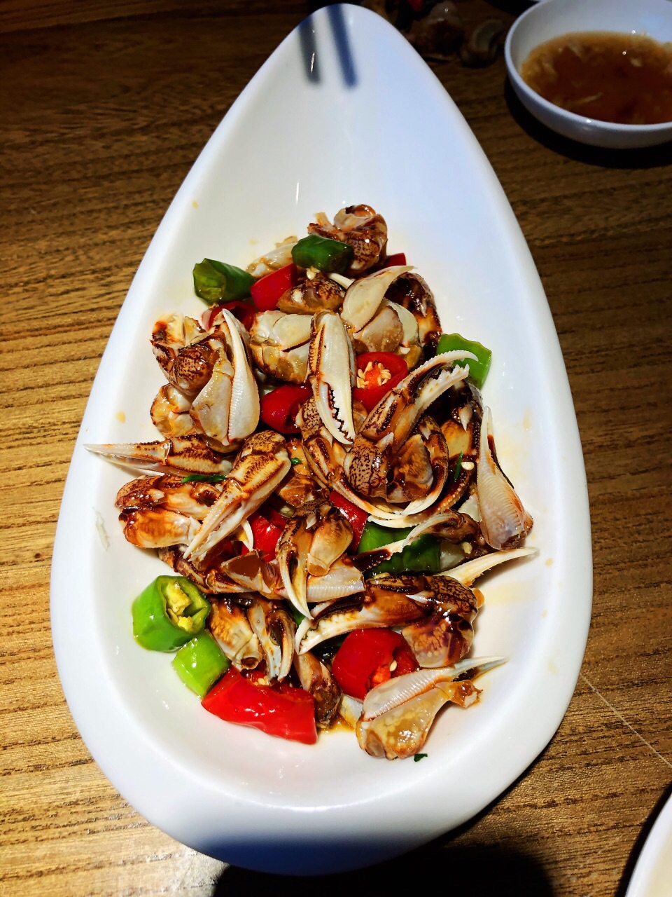 到青岛吃的第一餐,必须选择当地有名的鲅鱼饺子,而双合园饺子的口碑还是不错,在当地有多家连锁店。到店后点了最受欢迎的岭南大排、醉蟹钳,饺子种类很多,荤素都有。最终选择海鲜拼盘饺子(鲅鱼、墨鱼、黄花鱼),菜分量足,三个人六个菜200元,十分推荐。
