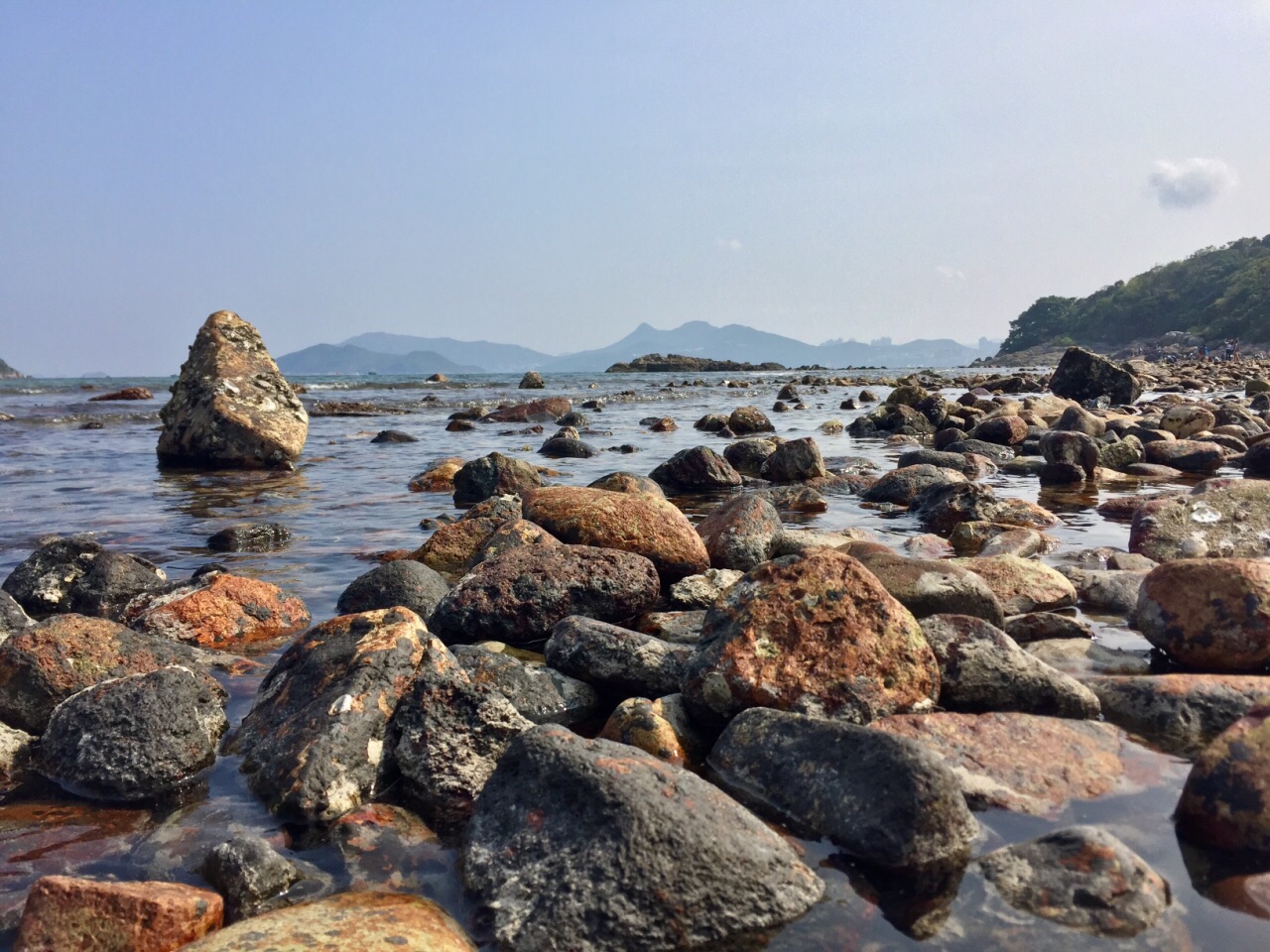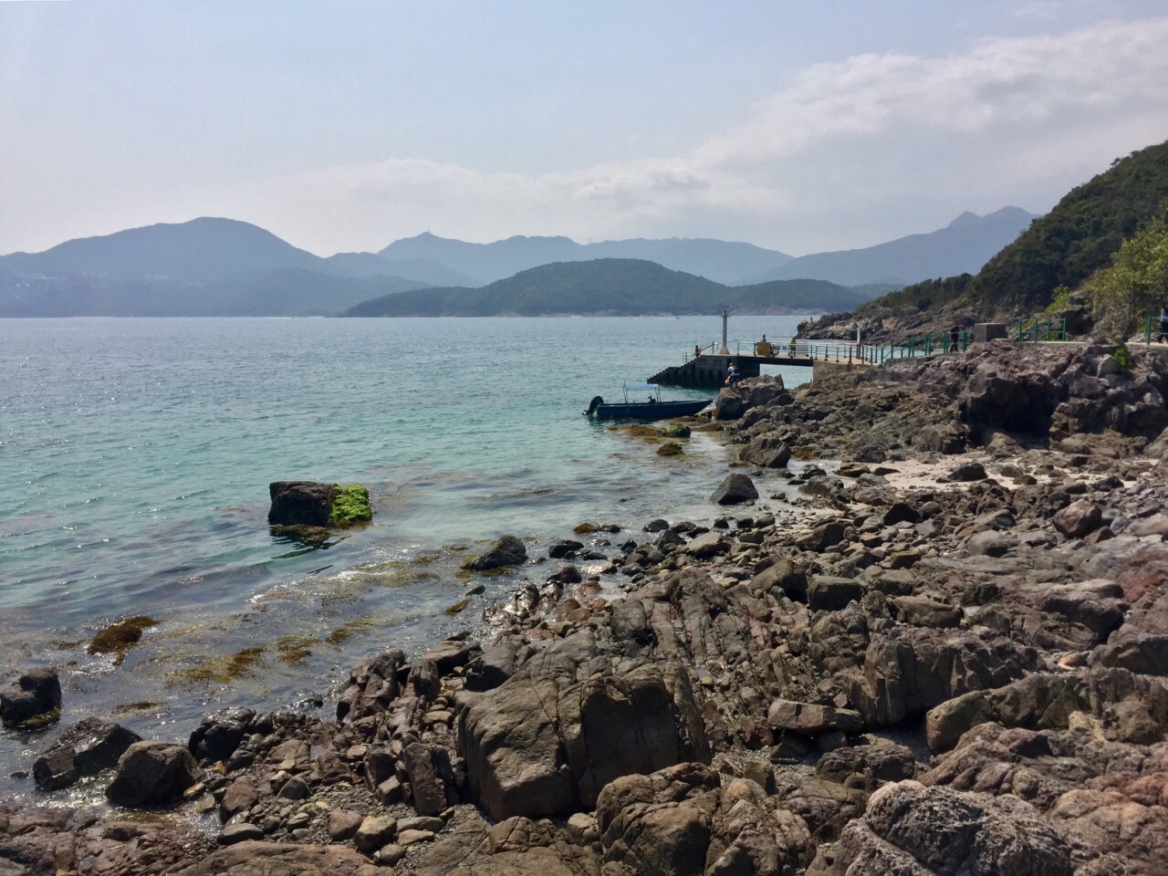 在西贡码头有很多一日游、环岛游、或者普通交通船到桥咀洲。我们参加了环岛游,从半月湾下船,徒步40分钟到桥咀码头,乘船回西贡的。帮月湾海滩非常漂亮,水清澈见底!到了桥咀可以去地质公园逛逛,那里有好像菠萝包一样的石头,很特别!