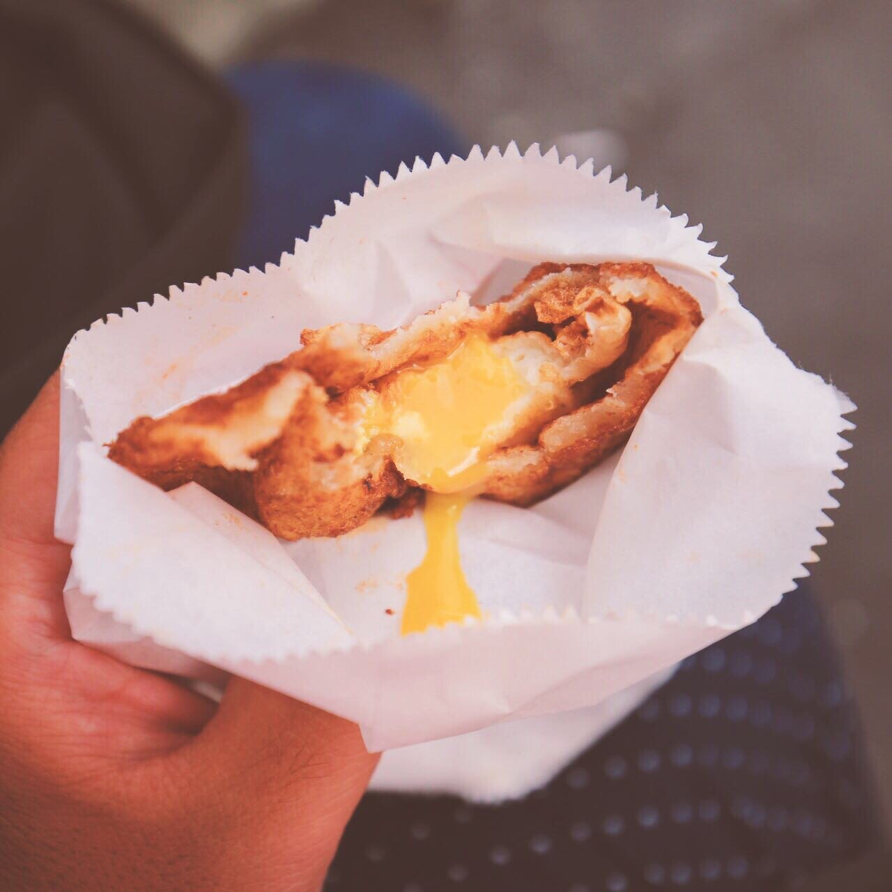 生意极好的店,每天限量供应。葱油饼是炸头的那种,脆脆的,里面的蛋没有炸熟流黄的那种,喜欢辣的朋友可以加辣。环境么就是路边小店,都是外卖的。