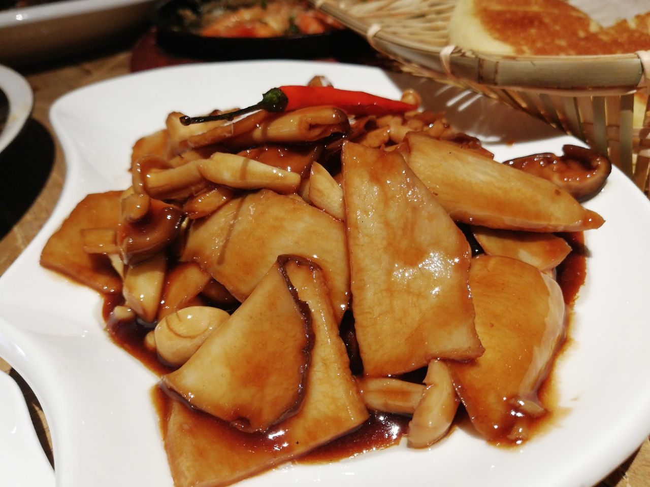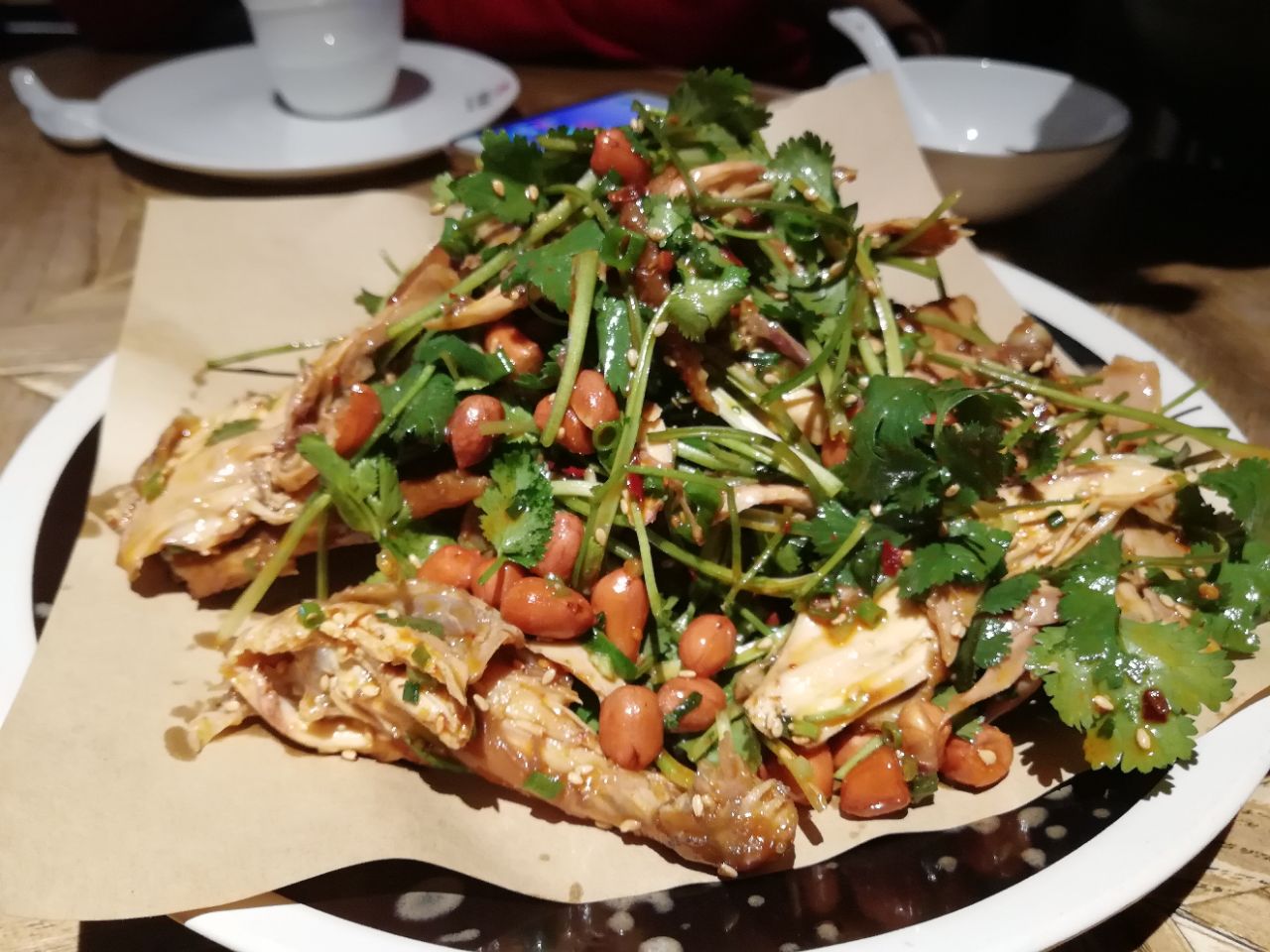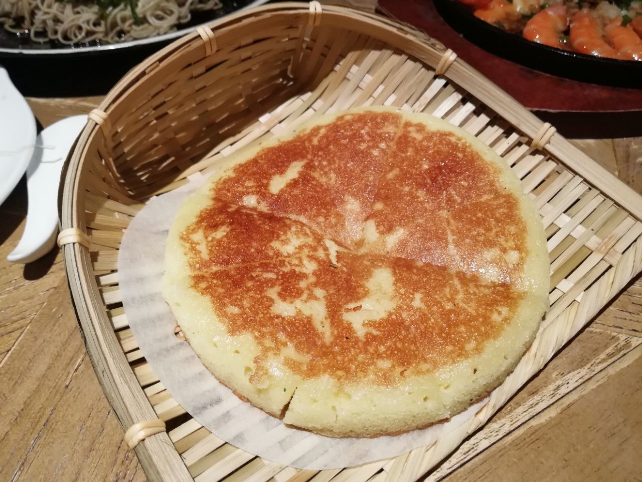 地址:苏州新梅华分店很多。每家店不同季节,菜单有少许不同。 人均:100元。 苏州新梅华人气很高,服务态度就一般了,因为太忙呀。 朋友请客,只有四人,点了很多菜,人均其实没有这么多,中午时间有限,没点烤鸭,鱼头汤量也过大。 1.牛扇骨98元:四个人吃有点量大了,每次点这个,都会说起:这骨头是不是重复利用?! 2.猪蹄:价格不详,这道菜上晚了,已经吃饱了。 3.铁板蒜蓉虾38元:每次必点吧,稳中求赞。 4.干煎鲈鱼48元:我和小伙伴都非常喜欢,一人可以吃一条,火候适中,每次不管是堂食还是外卖必点。 5.扇贝:5元只,每人一只。 6.手撕鸡:42,很好吃。 7.荠菜羹:15,也是每次必点的。 8.小米糕:16,还用说吗,打call。 另外还叫了葱油拌面25元。 嗯,减肥再说吧