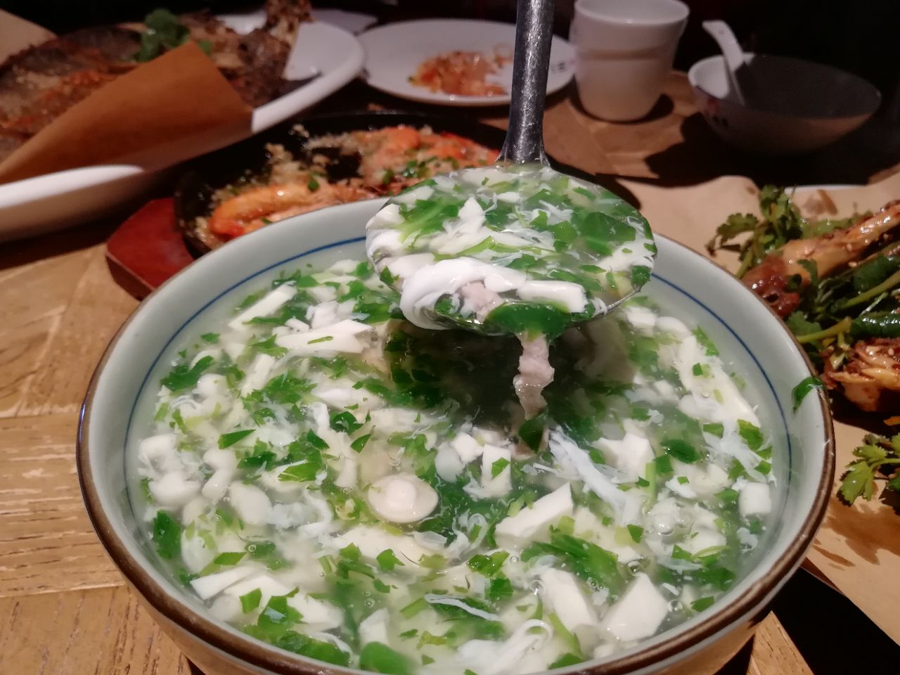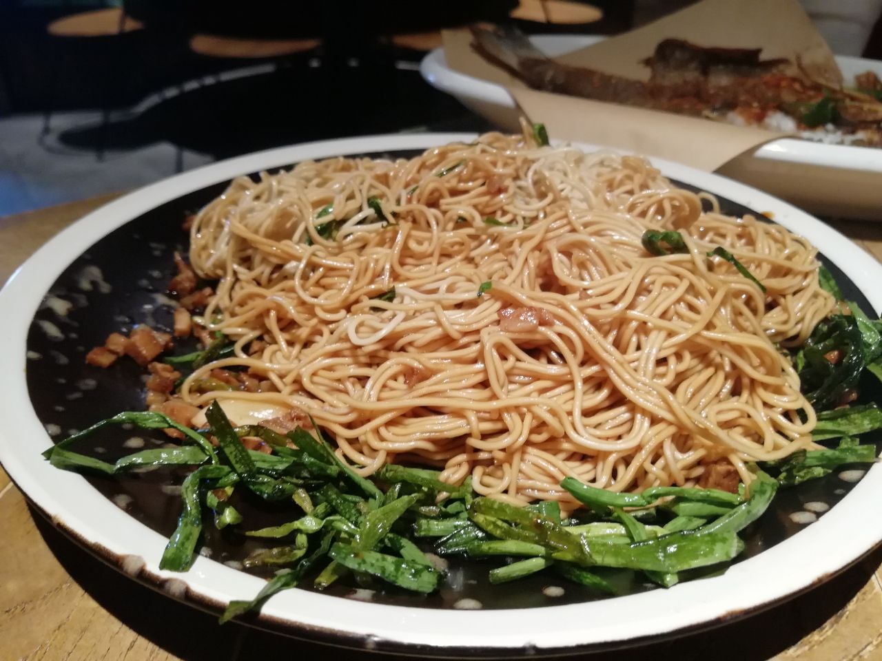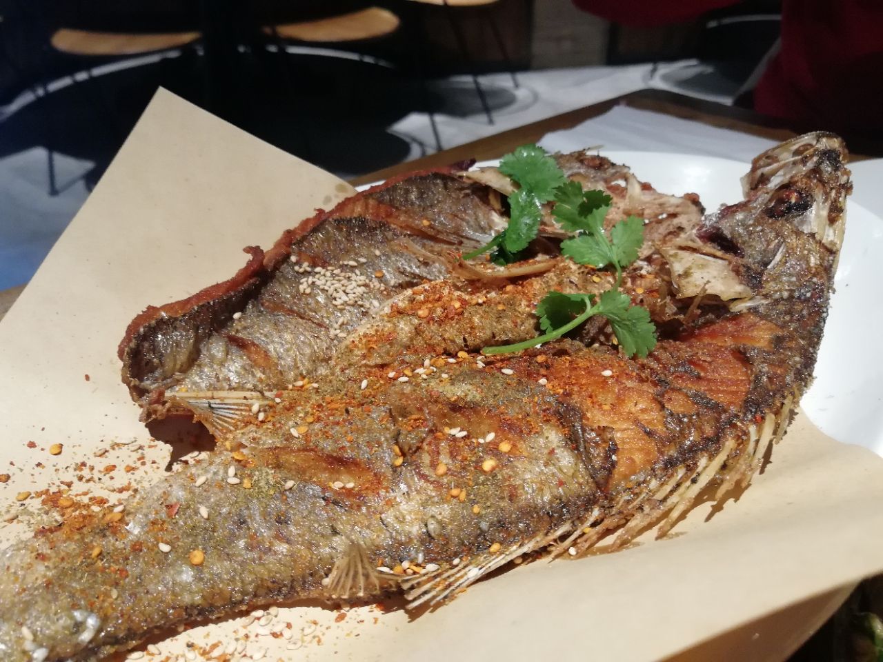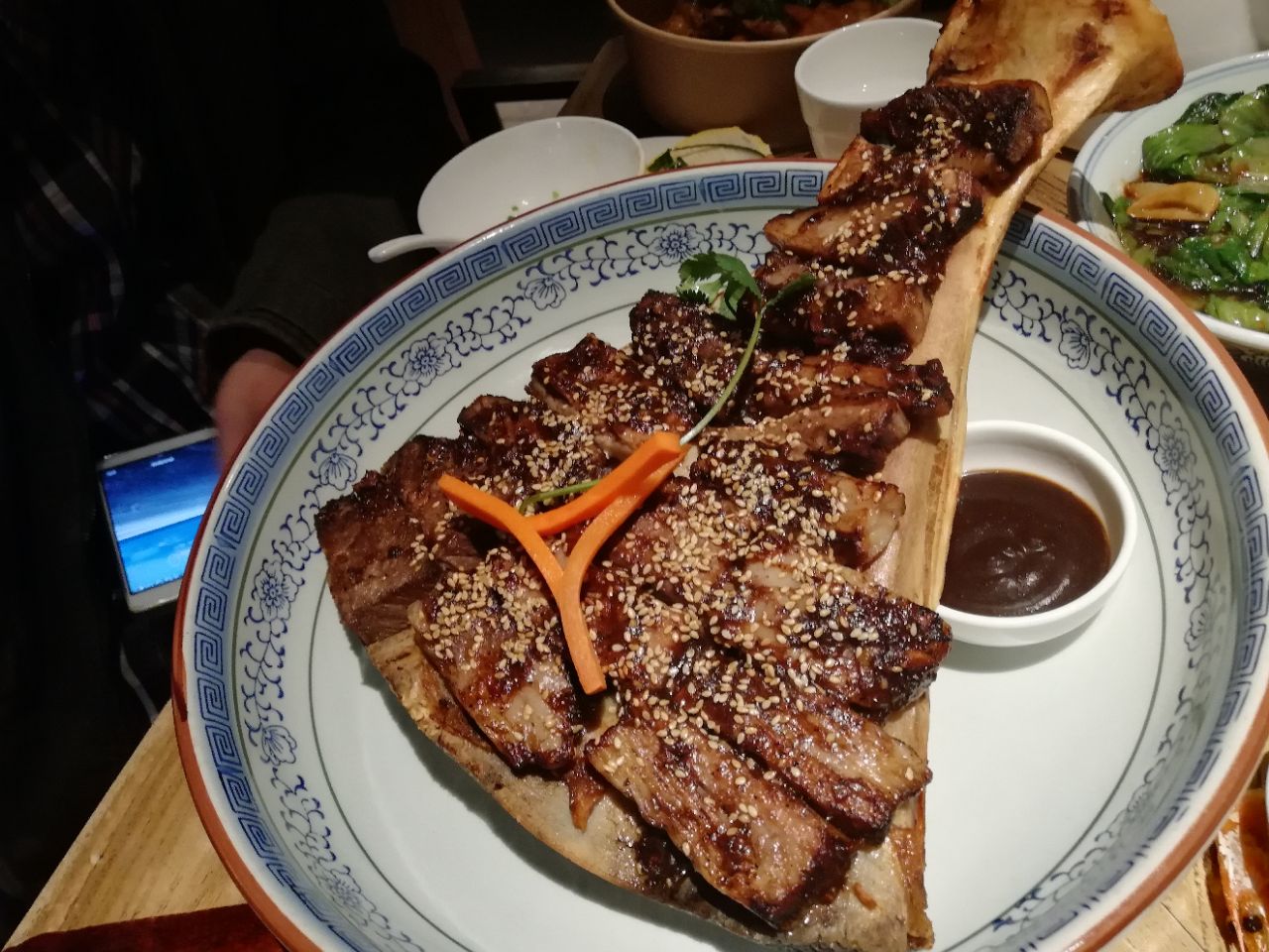 地址:苏州新梅华分店很多。每家店不同季节,菜单有少许不同。 人均:100元。 苏州新梅华人气很高,服务态度就一般了,因为太忙呀。 朋友请客,只有四人,点了很多菜,人均其实没有这么多,中午时间有限,没点烤鸭,鱼头汤量也过大。 1.牛扇骨98元:四个人吃有点量大了,每次点这个,都会说起:这骨头是不是重复利用?! 2.猪蹄:价格不详,这道菜上晚了,已经吃饱了。 3.铁板蒜蓉虾38元:每次必点吧,稳中求赞。 4.干煎鲈鱼48元:我和小伙伴都非常喜欢,一人可以吃一条,火候适中,每次不管是堂食还是外卖必点。 5.扇贝:5元只,每人一只。 6.手撕鸡:42,很好吃。 7.荠菜羹:15,也是每次必点的。 8.小米糕:16,还用说吗,打call。 另外还叫了葱油拌面25元。 嗯,减肥再说吧