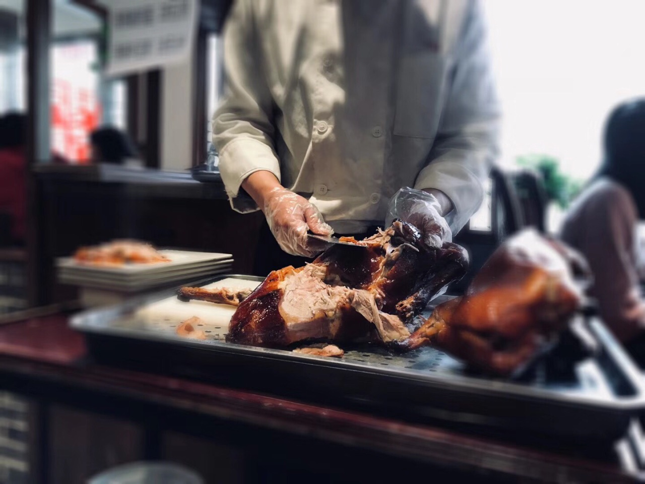 网友2018-03-31烤鸭味道还不错,不过烤鸭皮有点油腻,建议配爽口黄瓜吃。可能是我个人吃不惯的缘故烤鸭味道还不错,不过烤鸭皮有点油腻,建议配爽口黄瓜吃。乾隆白菜这道菜不推荐,花生酱做的,吃2口就有点腻了。可能是我个人吃不惯的缘故