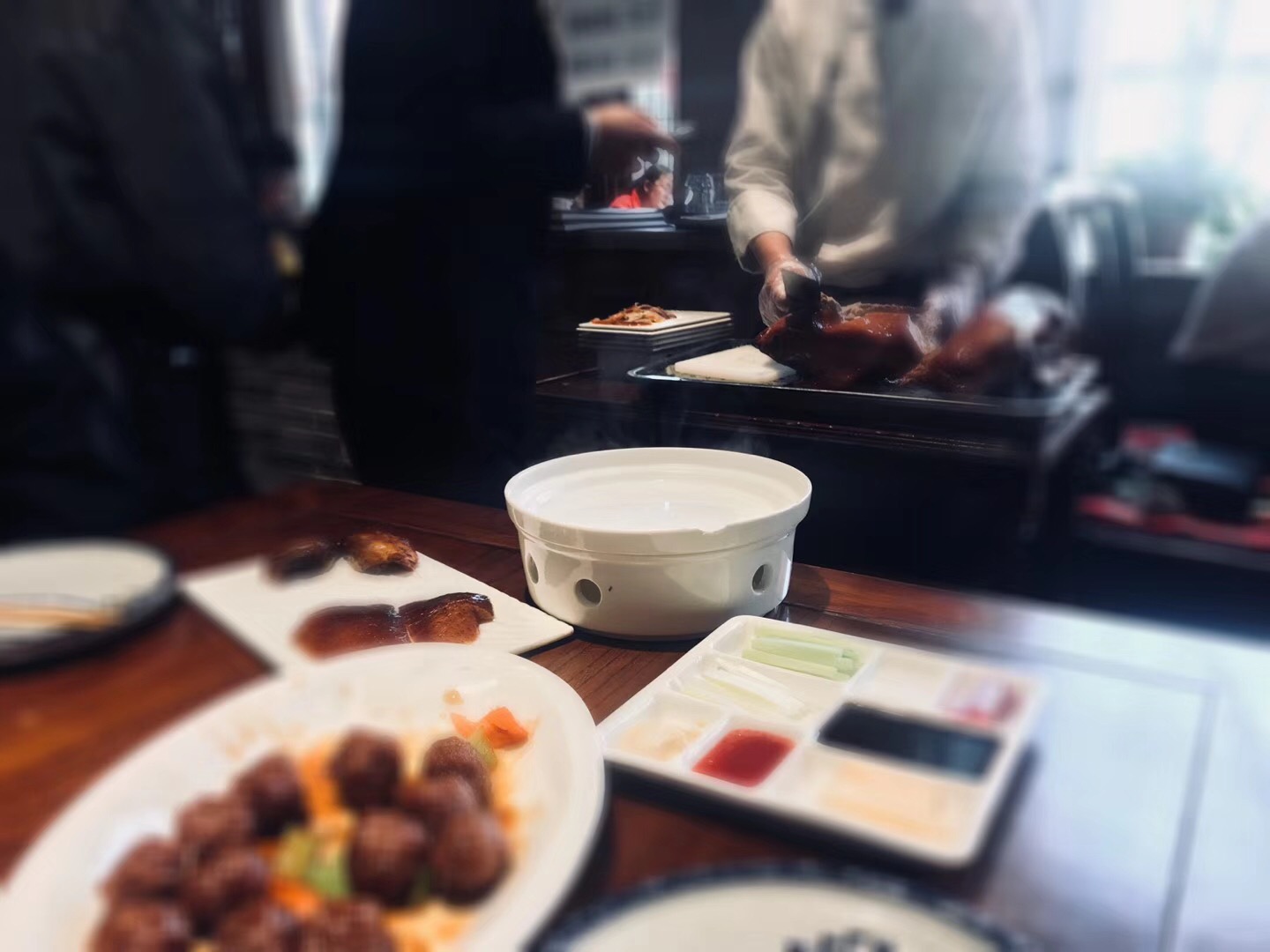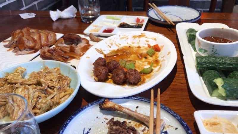 烤鸭味道还不错,不过烤鸭皮有点油腻,建议配爽口黄瓜吃。可能是我个人吃不惯的缘故烤鸭味道还不错,不过烤鸭皮有点油腻,建议配爽口黄瓜吃。乾隆白菜这道菜不推荐,花生酱做的,吃2口就有点腻了。可能是我个人吃不惯的缘故