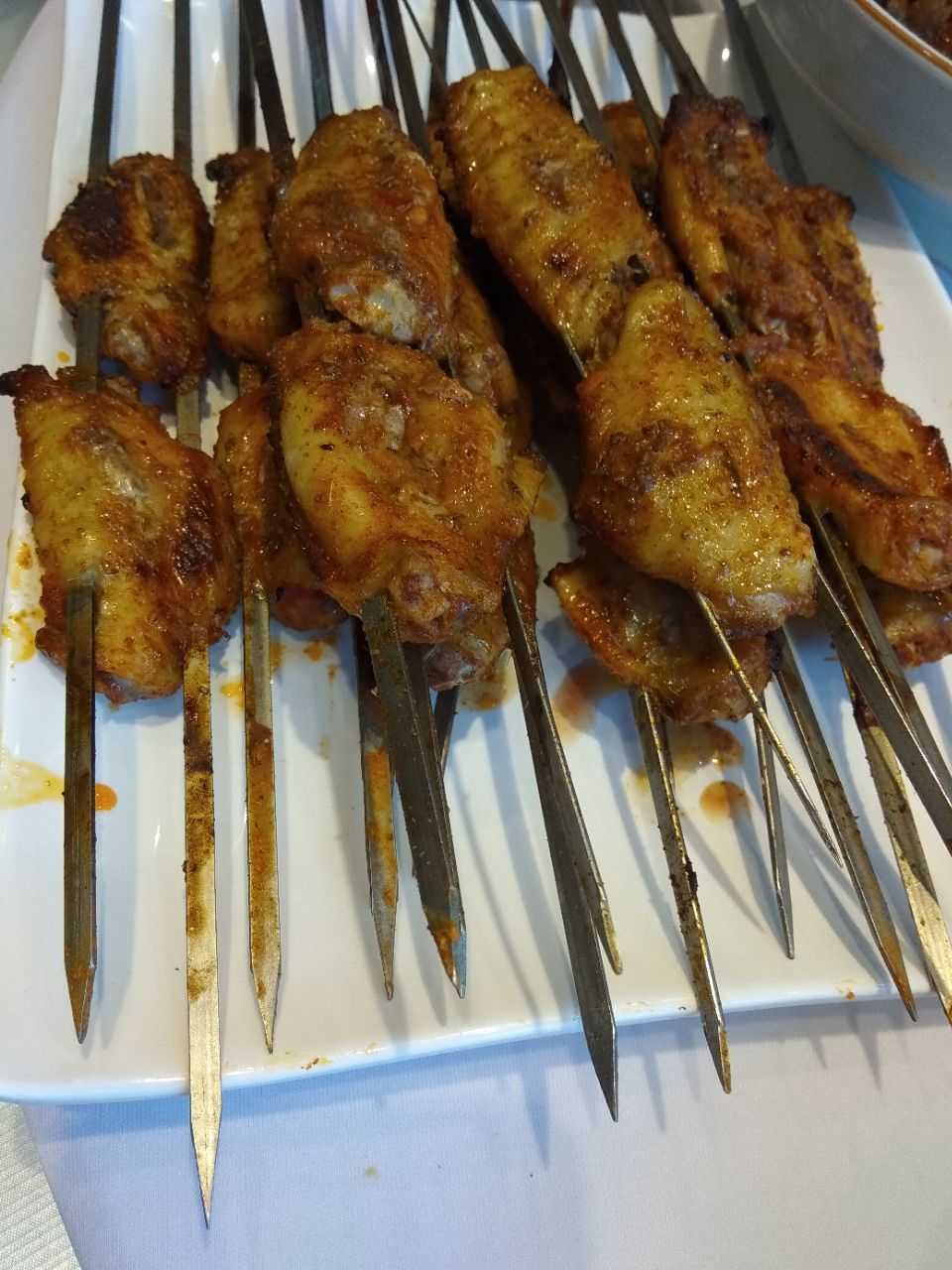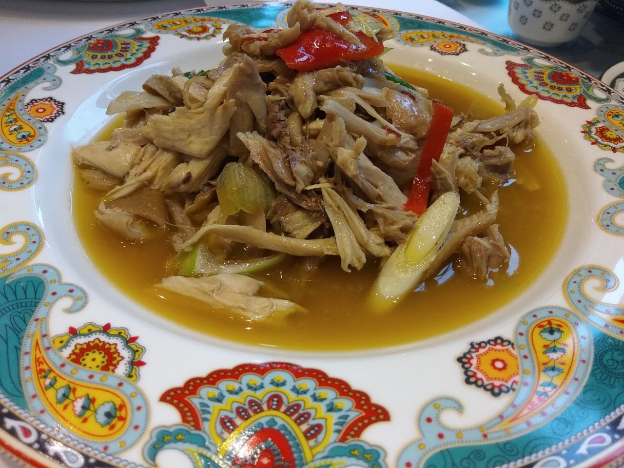 天津的新疆菜馆儿很少,好吃的更是寥寥,巴依老爷人气还是杠杠的~ 【巴依老爷大盘鸡】:大盘鸡算新疆的代表菜了,量大味美,不仅鸡肉和土豆软烂入味,皮带面也好吃。 【老爷特色包包菜炒馕】很喜欢的一道菜,新烤的松软酥脆,包包菜汁水充:足,一口一口停不下来~ 【巴依老爷酸菜鱼】酸汤恰到好处,鱼肉滑嫩,量也蛮大的。 【红柳烤肉/鸡翅】鸡翅一串两个,肉肉很大一串,烤的火候很不错 【新疆椒麻鸡】鸡肉像手撕的,麻椒不算很冲,所以比较容易接受。 【带花羊头肉】羊肉处理的很嫩没有膻味。 和小伙伴们吃的过瘾聊的开心,特别提示他家还有新疆舞表演的,聚会不错的选择~