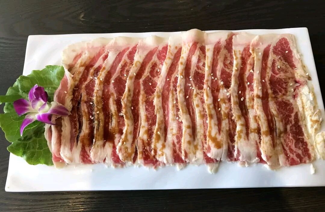 由于是第一次过来吃,怕烤不好,浪费食材。牛五花烤熟之后趁热吃,口感柔和还带点汁水,没有筋子很爽口