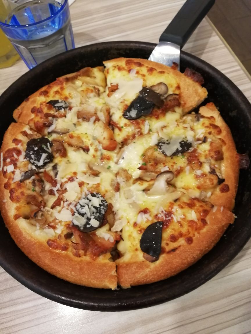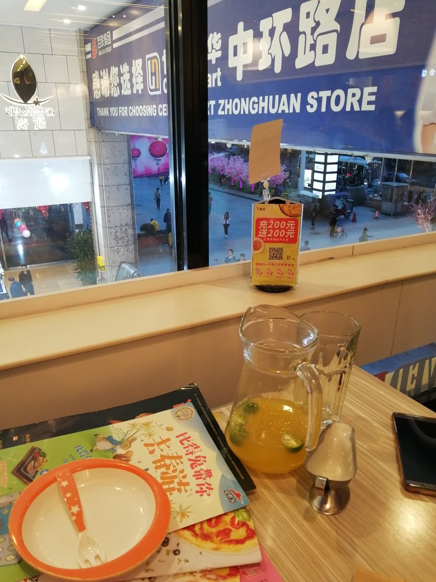 进入B区第一眼看到的就是位于左边的这家必胜客。很多年前第一次来,那叫一个人气火爆。然后上菜速度又慢的无语。菜品味道也不太理想。所以那次之后就觉得这应该是全必胜客里最差的一家店了! 今天带着孩子到中环百联上课,又再次选择了这家必胜客。饭点儿进去的,没有了往昔排队的场面。坐在二楼视野不错。上菜速度可以,菜品味道也改善了不少,买单时还问有什么意见,冲这服务态度,以后还会再来!对了,这家餐厅里面就有厕所,不需要走到商场里,赞一个!