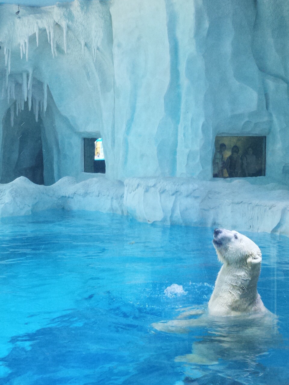 在水里玩的可开心了,最搞笑是一岁多的儿子一边看北极熊,一边模仿北极熊嘴巴动作,在他脑海里,最深...到的时候刚好北极熊出来活动,在水里玩的可开心了,最搞笑是一岁多的儿子一边看北极熊,一边模仿北极熊嘴巴动作,在他脑海里,最深刻的就是北极熊馆就