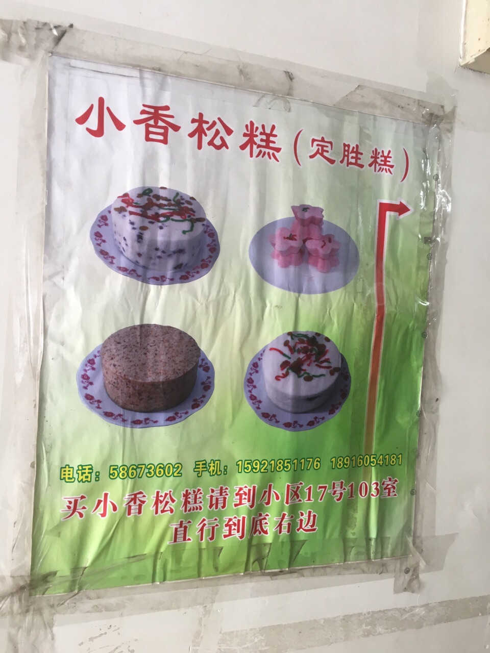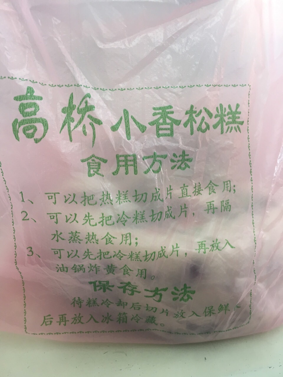 听说这家小香松糕是高桥的特色松糕店,开在居民区里,找了天有空就来买了。价格是松糕小的是16元,大的是28元。品种有赤豆糕,豆沙糕,红糖糕,枣子糕,核桃糕,糯米糕,定胜糕等。 买了小的赤豆糕2个,小的豆沙糕2个,小的红糖糕2个,有点像崇明糕,满好吃的。