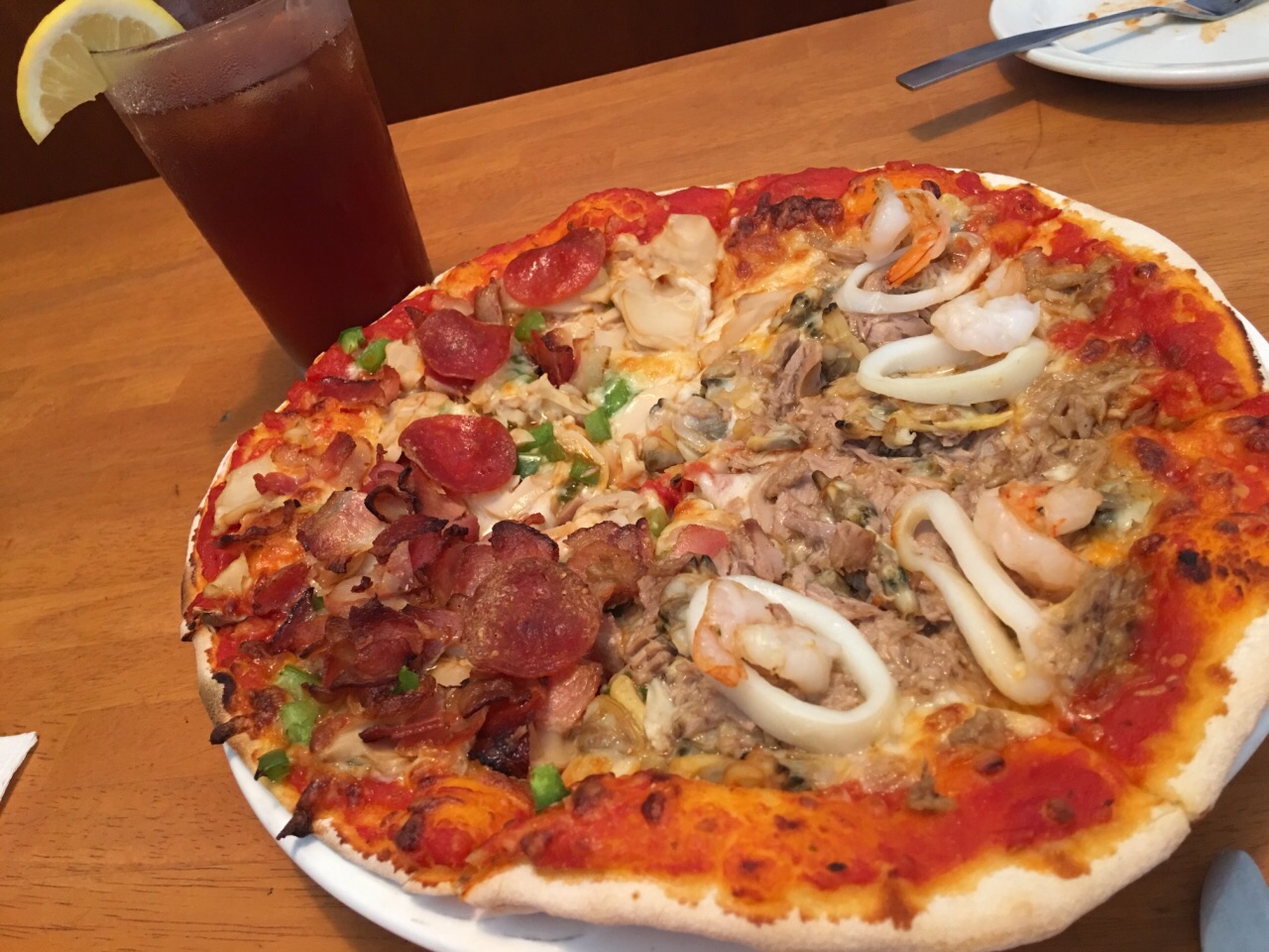 披萨很好吃,料很足,还可以加1美元双拼,另外,量真的大到惊人,一个小份的意面足够两个人吃的,有...味道比较纯正,但是意大利面有点硬,像是没有煮熟一样,披萨很好吃,料很足,还可以加1美元双拼,另外,量真的大到惊人,一个小份的意面足够两个人吃的,有中文菜单,点菜很方便,值得去吃。