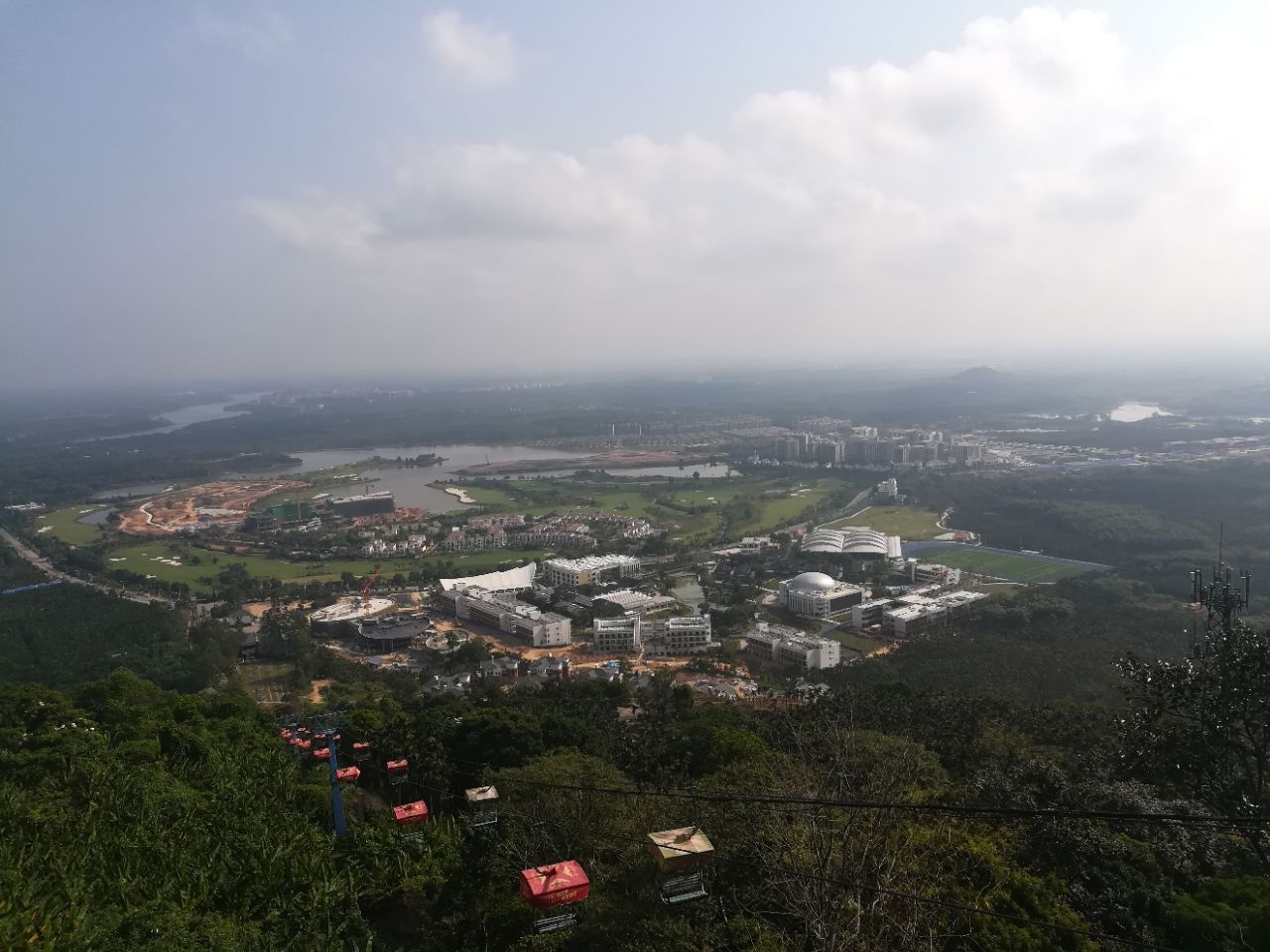网友2018-04-04自然风光很好,站在山顶,可以俯瞰琼海万泉河,天气好的话,可以看到博鳌机场坐缆车上去的,建议老年人坐缆车上去,可以省一半的力气.自然风光很好,站在山顶,可以俯瞰琼海万泉河,天气好的话,可以看到博鳌机场