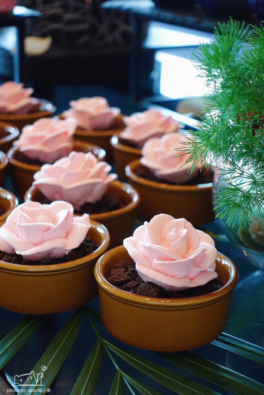 红红火火的冬日草莓季刚刚谢幕,就迎来了生气勃勃的盎然春意。春日里,百花盛开,香格里拉大酒店适时推出了“心花怒放”春意下午茶。 刚进酒店大厅,就被浓浓的鲜花氛围环绕,大堂吧更是充斥着各种鲜花元素,在这样的环境下享用鲜花主题下午茶,大叔也会萌生满满的少女心呀~ 各种甜品甚是吸引眼球! 苹果酥粒,表面的酥粒香酥脆口,口感很棒,中间夹心浓郁厚重,塔底扎实,口感细腻。黄油香搭配苹果的清爽果香,口味很和谐。 英式司康,比较清淡的干式司康饼,直接吃十分健康,搭配三种酱料味道更丰富。 手工饼干,浓郁的牛油香气搭配优质坚果,搭配一杯红茶就很完美了。 巧克力香蕉塔,香蕉的元素中和了巧克力过于醇厚甜腻的口感,回味悠长。 芒果布丁,柔和顺滑,和新鲜芒果一起入口,很有层次感。 杭菊慕斯,颜值颇高有木有~入口即溶的奶油,化不开的淡淡的甜蜜。 巧克力茉莉蛋糕,浓醇丝滑,甜苦交织,爱巧克力的不要错过。 芒果芝士蛋糕,芝士浓度很高,扎实馥郁,入口十分细腻粘软。 玫瑰意式奶冻,不仅是粉红玫瑰的外形,玫瑰的花香也渗透到蛋糕的每一个元素,吃一口,慢慢体会花香充满整个口腔又向四周弥漫的美妙感受。 蓝莓马芬,糕体十分绵密,低调却十分优秀。 咸点也有几款烟三文鱼三文治、牛油果寿司以及火腿法棍甚是惹人喜爱。 现点现做区有现烤蛋挞、虾饼、叉烧酥、松饼,要趁热吃哦!强推虾饼,每一口可以感受到虾肉的原始鲜甜和弹嫩,比虾滑的入口体验棒很多。 除了点心类,还有十几种新鲜水果吃到爽,饮料除了热红茶、冰镇的玫瑰气泡水、茉莉花茶还有抹茶拿铁~ 下午茶以平日168RMB双人套餐,周末128RMB单人自助的形式进行。路边的野花不要采,这里的花儿随便撩~周末的时候还有十人起订插花课程,约上朋友一同来enjoy最美的春日下午时光吧!