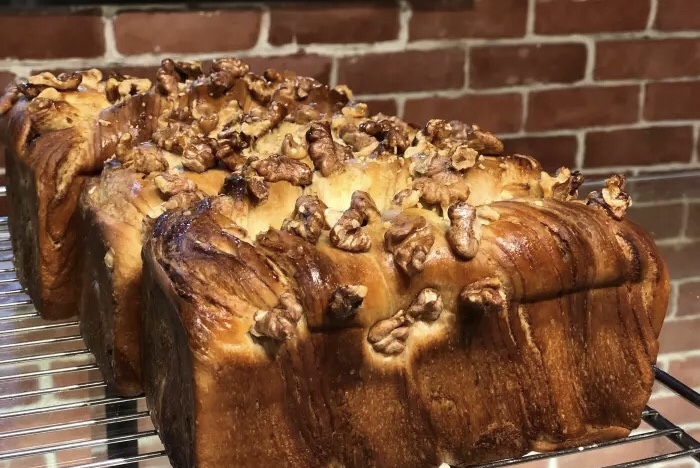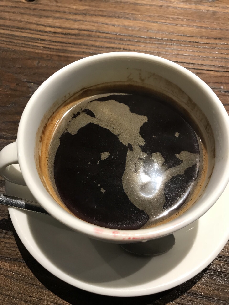 走着走着竟然开始下雨 果然清明节必须下雨啊 平时路过这家店终是很多人, 感觉闹哄哄的,今天竟然空荡荡,一样可以看到满架子的面包。 这是一家很大的店铺,做90度转角,门口有面包试吃,很是大方的店家。从各式面包吐司到蛋糕 品种多的让人无从下手…… 看了网上的推荐,买了简单的2款,外加一杯美式咖啡☕️ 用着麻烦的Wi-Fi 刷手机,等雨停。 美式第一口有点苦,很快苦尽甘来,味道不错,越是简单越能考验技术与原材料。 如果面包价格摘能亲民一点就更加完美了……