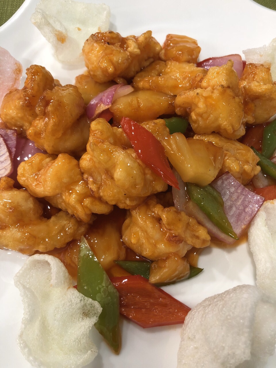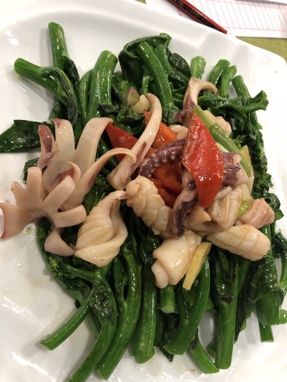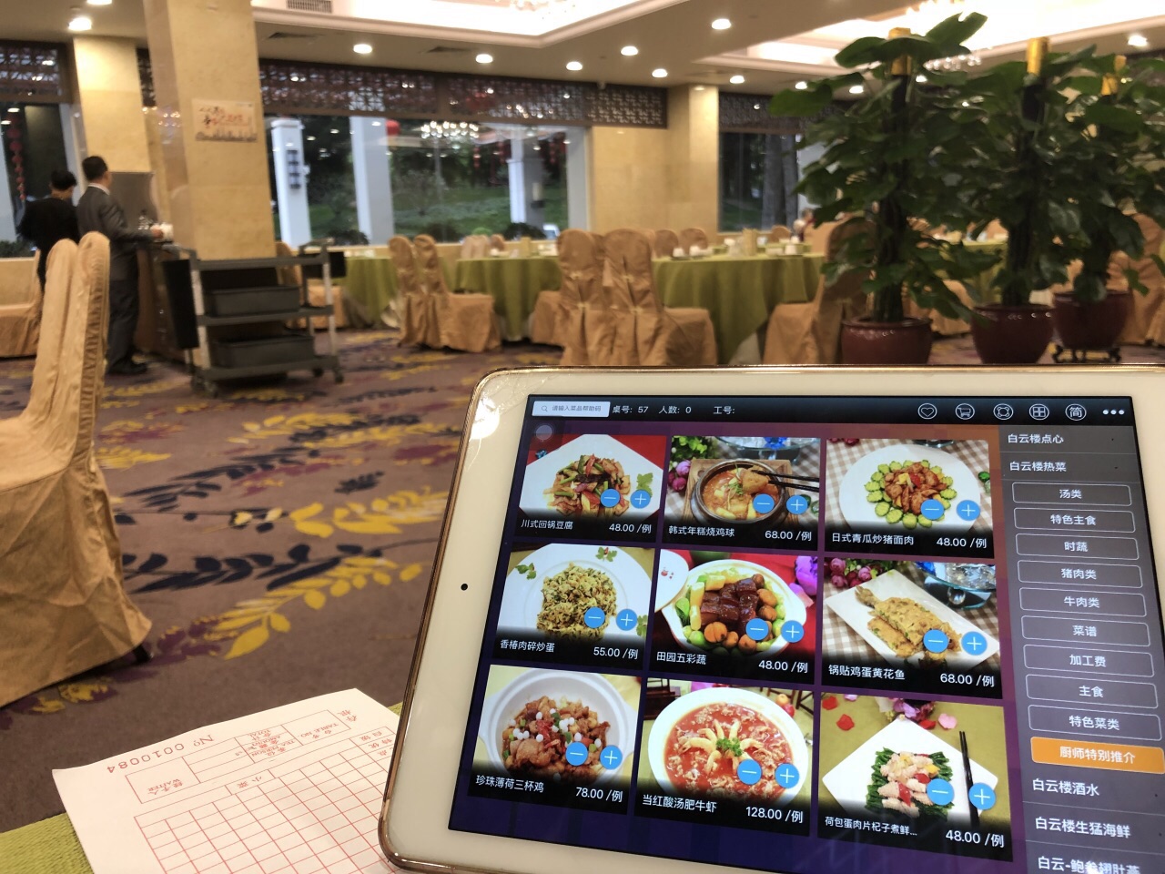 住在迎宾馆,顺便到这里吃个晚餐。就在白云楼一楼,店堂宽敞明亮,服务态度良好。住店客人打9折,但要收10[%]服务费。淋油鸡肉质Q弹,非常鲜美,但有些偏老。宫保虾球酸酸甜甜的,但裹的面粉有点多。鱿鱼炒芥兰清淡爽口,有虾蟹味。人均120元,不错。