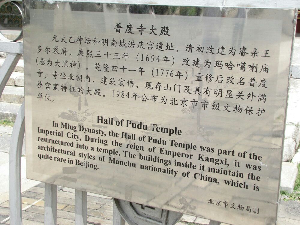 ...尔衮的故居,这个府衙地势高,几乎可以与故宫的太和殿比高低,可以想象住在这里的主人的地位如何显赫普度寺是清代多尔衮的故居,这个府衙地势高,几乎可以与故宫的太和殿比高低,可以想象住在这里的主人的地位如何显赫。 在大殿的后面可以看到故宫的角楼,这种住宅在北京不多见。