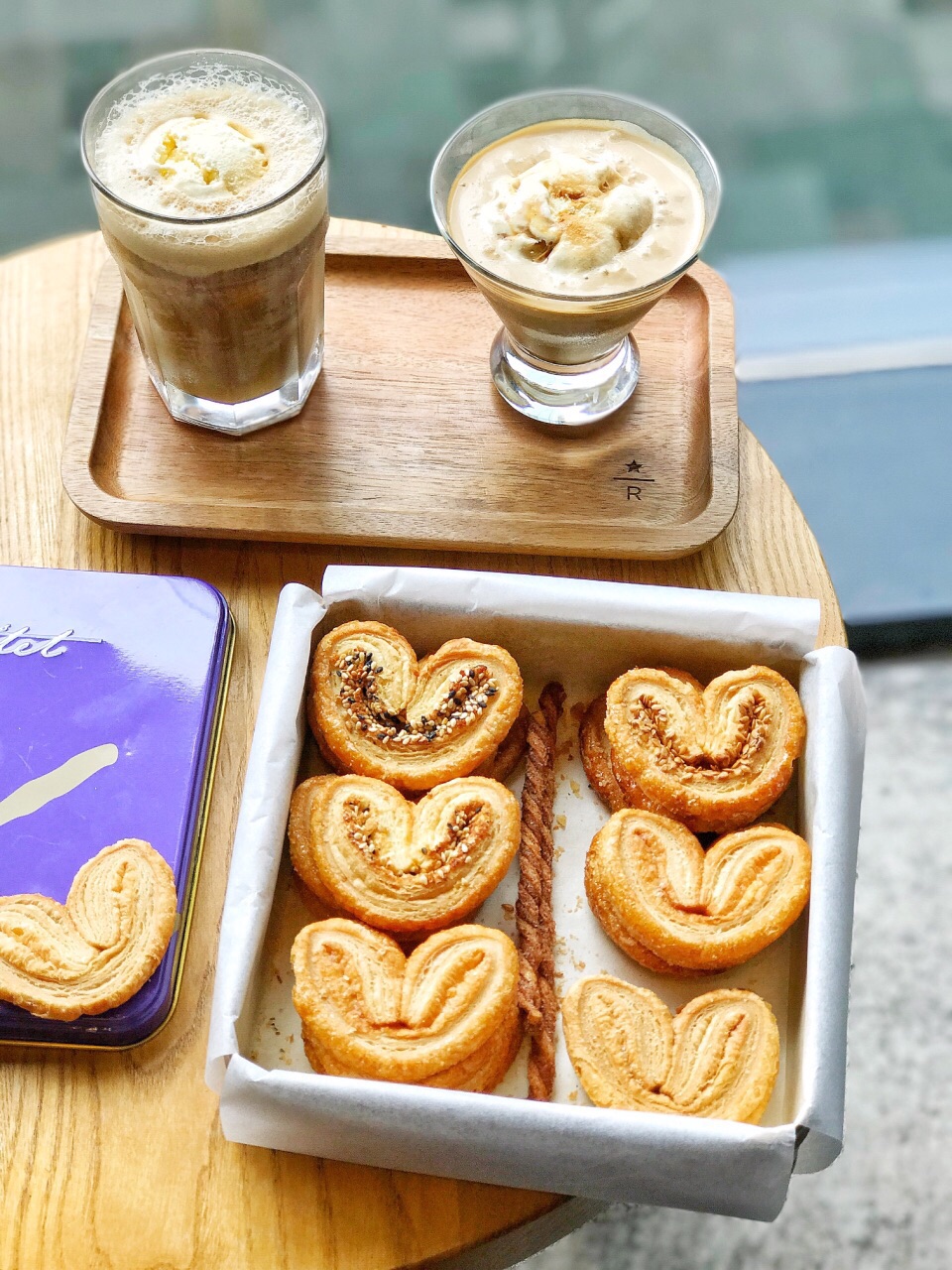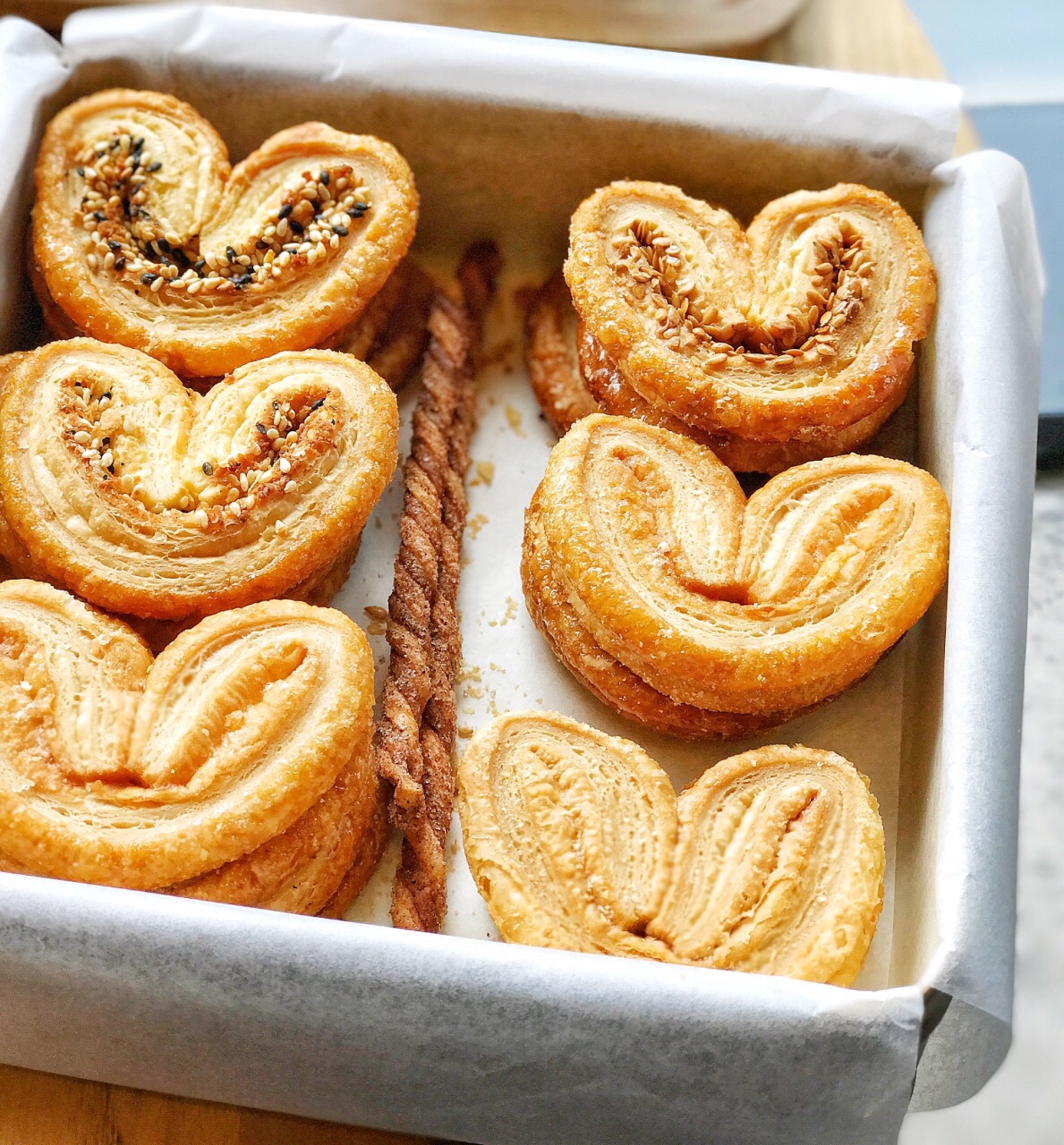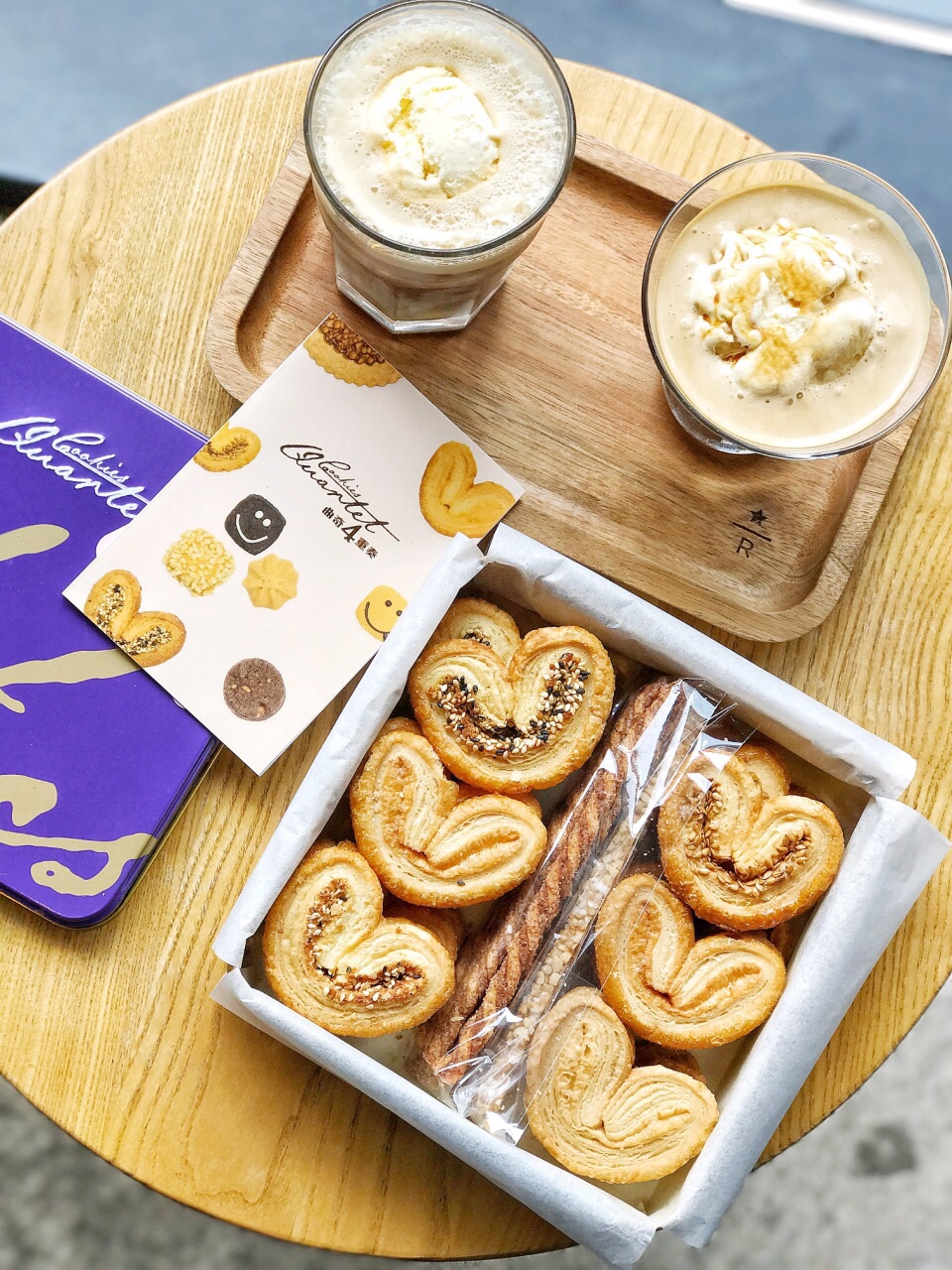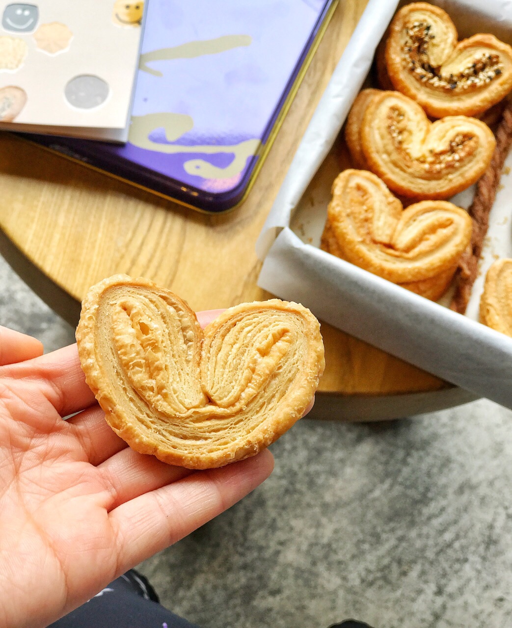 因为朋友圈有人po了这家的蝴蝶酥,是原味款的那一盒。 哈哈,小亚本身就喜欢蝴蝶酥,所以就立马被种草了,果断找了翟先生,让他下次回成都的时候,顺便带一盒回来尝尝。 虽然这家的曲奇也很有名,但是考虑到自己并不是很喜欢曲奇,所以选了颜值更高的蝴蝶酥礼盒。 还是选的口味最丰富的杂锦蝴蝶酥礼盒。 【杂锦蝴蝶酥礼盒】188元港币 小铁盒做得很精致,外观设计也比较高档的样子。实话说,我一直觉得小熊曲奇的铁盒图案看起来很low,很像地摊货。哈哈! 礼盒包含4款口味的蝴蝶酥和2款酥条。 “原味蝴蝶酥”:蝴蝶酥的酥皮做得很好,层次很薄很分明,色泽金黄均匀,黄油味浓; “亚麻籽蝴蝶酥”:其他口味的蝴蝶酥,其实就是原味蝴蝶酥中间加了点不同配料而已,在味道上差别并不大。这个就是原味中间有点亚麻籽颗粒而已; “黑白芝麻蝴蝶酥”:因为有了黑白芝麻,这款蝴蝶酥会更香一点,黑白芝麻的味道: “椰丝芝麻蝴蝶酥”:有椰丝和白芝麻,喜欢椰丝的味道,可惜太淡了,基本上不明显。 【玉桂酥条】酥皮和榛子颗粒搓长条,蘸上肉桂粉,自己可以想象的味道。 【杏仁酥条】杏仁颗粒很多,所以格外的香脆,只有几根不够吃哦。 恩。说不上惊艳,但是算是好吃的。价格略贵!