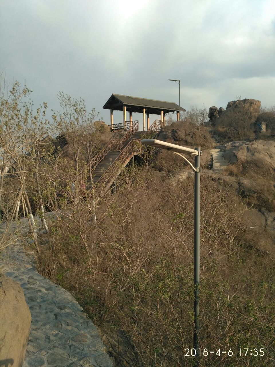 清明节重游济南药山 记得是2006年春节刚过,曾在北马鞍山脚下住过十几天,有一天下午闲来无事,随便向北蹓跶,偶然就发现了那座小山,虽说不大的一座山,但也具备了做为一座山所应有的基本特点,也算是一个意外的惊喜,十几年过去了,一直念念不忘,特别是到处在开发房地产,又在强力保护自然自源的今天,药山的命运如何? 2018年4月6日,清明节的第二天,我约上几位知己好友一行四人,驱车四十余公里,故地重游。 穿过不算闹市的市区,七拐八拐,来到无影山路西边的一个小街道,刚向里一拐,地势陡然高起,右前方就是一处公园,我们猜测,药山公园,到了! 路两旁禁止停车, 我们将车拐进左前方一个居民小区,找一车位,停车,估计车位是私人拥有的,留下电话号码,出来,开始登山进公园。 记得十几年前的药山周围一片荒芜,我当时是穿过了散散落落的一个小村子,又走过个几个小土岗,然后又走了一段相对平坦的沙石场子才开始登山的,印象当中,药山有两个山峰,从远处看,不是很高,但爬了一会儿以后,上第一个山峰就不容易,其中,有一个地方,是垂直的小绝壁,不是陡峭,而且直上直下,足有三人多高,没有台阶,只有几个类似前人登山用前脚掌磨出来的踩点儿,几乎没有可以用来帮助攀援的小树株,更不用说绳索之类了,用“危险”二字来介绍当时的情况一点儿也不夸张,当时我三十几岁,体力尚好,还是费了好大力气才上去的。 站在第一个山峰之顶,向东南眺望,济南高高低低的楼房和大大小小的工厂,紧凑而又渺小地趴卧在千佛山脚下……真地算不上一个多大的城市。 第二座山峰更高些,距离并不远,但两者之前,也有一段惊险的路程。 没有台阶,没有正常的哪怕普通的小路,有一处类似鸭嘴的地方,五六米长的样子,要从上下中间穿过,直不起腰,抬不起头,脚下是斜坡,再下边是悬崖,真不差起华山的“老虎嘴”,当时过去后,两腿颤颤,抖了很长一段时间。 攀登第二高峰并不是很难,尽管没有台阶,尽管有很多容易滚落的石子,但好歹有人行的痕迹,只要小心翼翼,左攀右援,注意脚下踩实,还是没什么太大困难就能上去的。只是登上山顶,北风一吹,你就会浑身发抖,两股颤颤,犹如上千米高山之颠了。