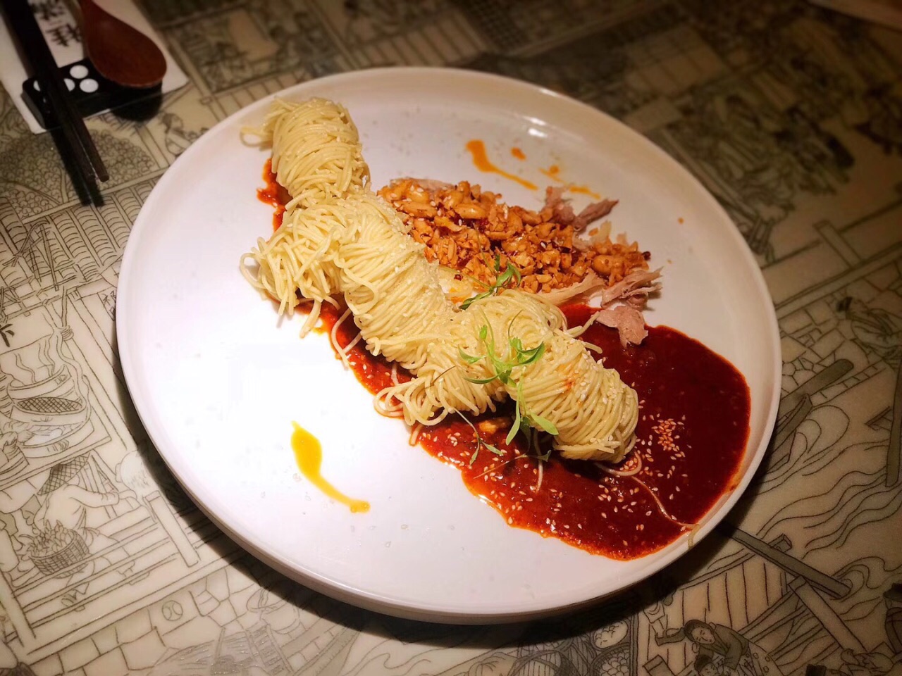 菜品很有特色,环境也好,特别喜欢鸡丝拌面,造型特搞笑,鸡爪的味道特别好,素蟹粉也推荐菜品很有特色,环境也好,特别喜欢鸡丝拌面,造型特搞笑,鸡爪的味道特别好,素蟹粉也推荐。东坡肉,炒牛肉每个菜都不错,算是改良过的杭帮菜吧。味道真的是值得推荐。