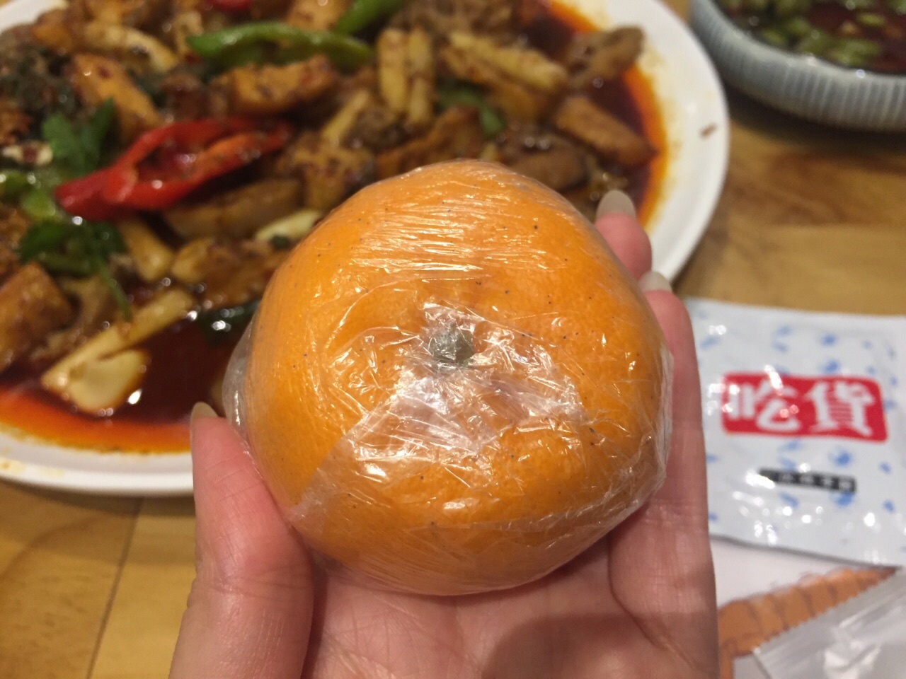 再吃螃蟹,螃蟹切块烧的,很入味很辣,螃蟹选的不错,肉多。 晚上5点多过来,不用等位,挑了沙发座坐下
