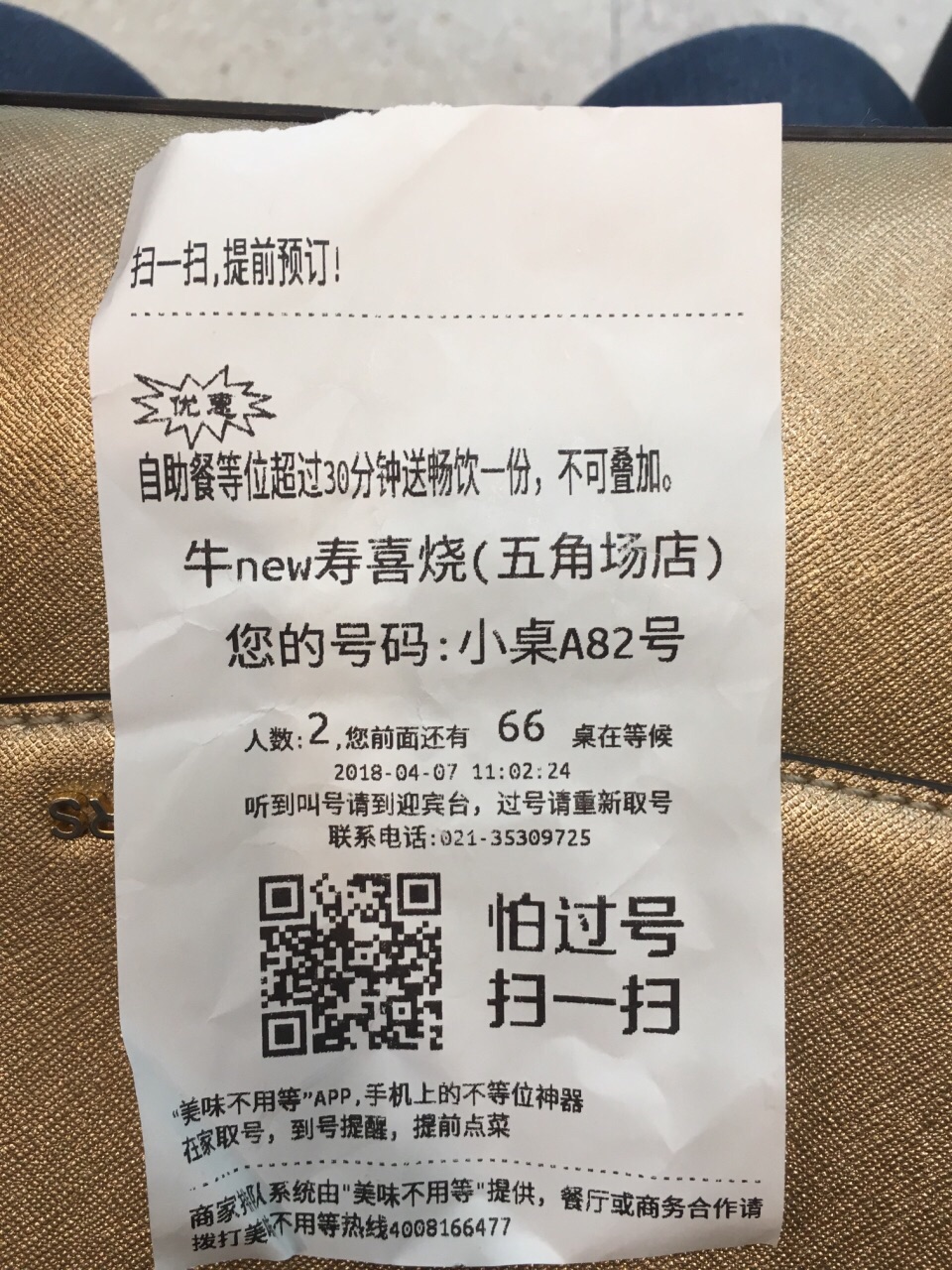 突然想吃寿喜锅了,就来这家了,周六过来的,等位2个多小时,在五角场拿好号还能去逛逛。 选了138元的,食材可选不算多,肉质也还行,至少对得起这个价位。选的寿喜锅,有配朝一鸡蛋,吃完不够还可以加的。服务还不错。 点了牛肩肉,虾,响铃,菠菜,藕片等等,都还行。 等位时间超过半个小时送畅饮一位,138元的比118元的可以多点前面三页的菜,138元和158元可点菜一样,就是可以选择先煎再煮。