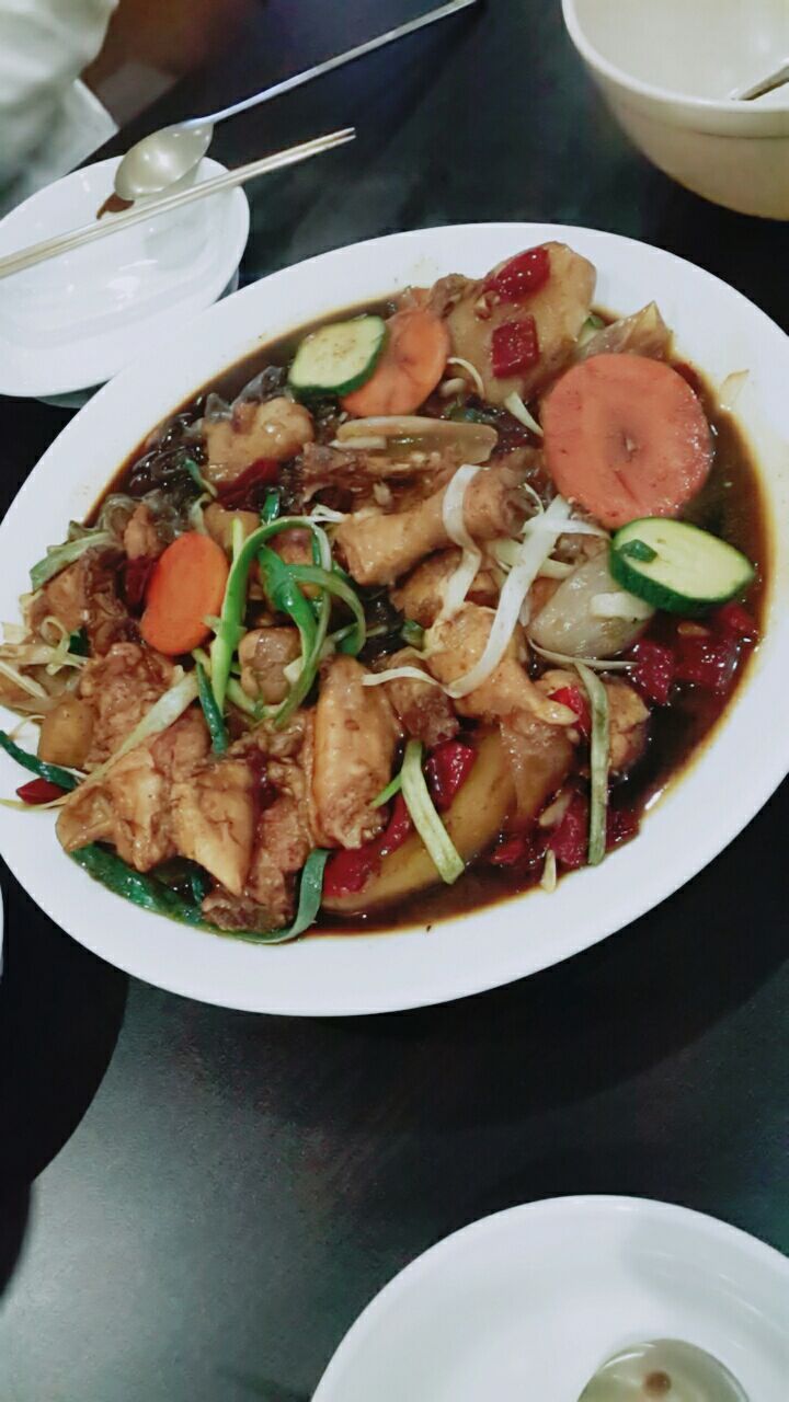 酱鸡是咸味的鸡肉炖土豆和粉条,上面会放长长的葱丝 小份适合2-3人食用 来韩国旅游一定要尝试~! 口味还是很符合亚洲人的,没有雷点。我爱吃里面的宽粉,很入味~ 鸡肉也不会很长胖,晚上吃也不担心哈哈 还有非常推荐锅巴炒饭 香到无法忘怀的味道!