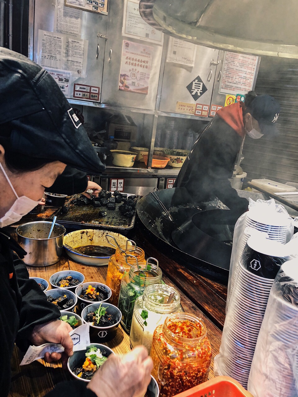 一闻到这种臭味就饿,转头看见这家文和友,稍稍排了点队还能接受就立马贴了过来。10元一碗肉酱臭豆腐,排完点餐的队排等餐的队,出品速度很快,特地要求多蒜多香菜开心~但是味道不如第一次吃黑色经典时惊艳,说到底觉得汤汁不够,豆腐包汤吸入是最最爽的,这家没有,汤汁是少少量,供蘸取意思一下。吃过这家文和友后发现几乎是十步一家的密集程度,且每家都在排队,太夸张了。