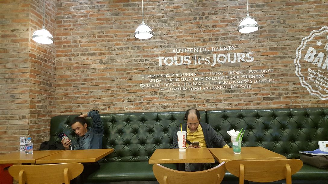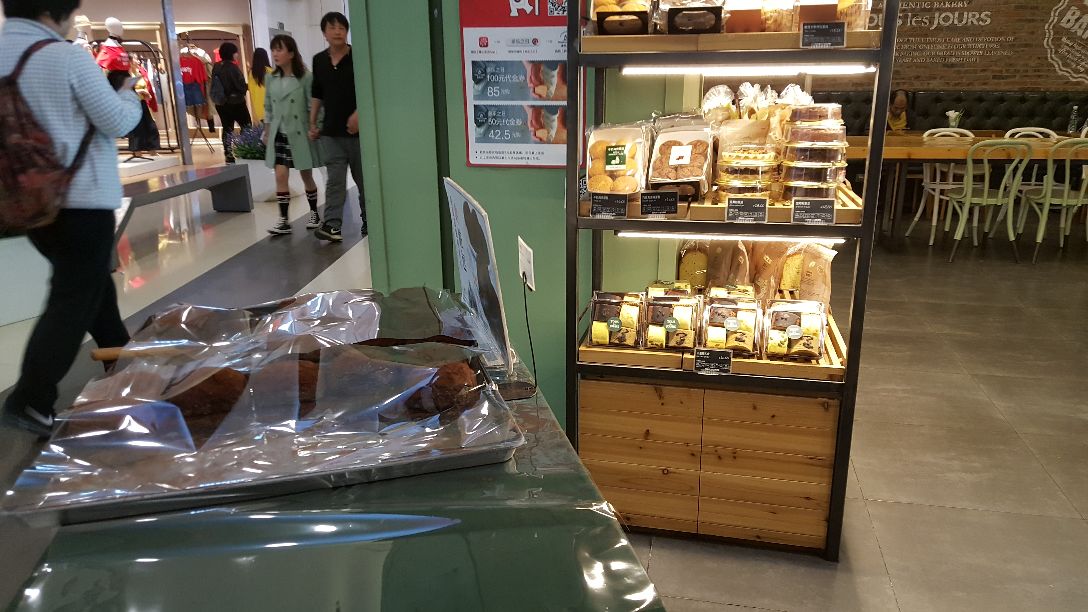 这家店应该算是这个连锁面包店里面积比较大了,有差不多1/3的面积是有椅子和桌子的,可以在这里休...这家店应该算是这个连锁面包店里面积比较大了,有差不多1/3的面积是有椅子和桌子的,可以在这里休息和在这里吃的,另外的2/3当然就是面包和糕点了