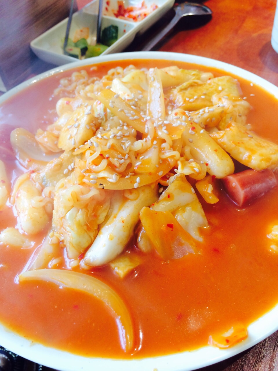 被我一姐妹强烈安利而来!甚至还附带了手绘地图,画得这个详细,没有图,我根本找不到好么~ 位置 如图,或者看不明白可以再仔细看看!简单说就是石油大学北门对面胡同“万和兴大院”里,左手即是。 真的非常小啊,也就6张桌椅,消费群体多是学生,价格也不算特别亲民,只能说还好,估计学生群体中属于周末开个荤那种吧~遥想当年,我们大学食堂10块解决一顿,现在,哎,貌似一个卡通冰棍都不止这个价了,孩子们生活压力多大啊~ 服务 人多,所以别指望服务多好,笑容真是不够使的,好在还是能用团购的,也要专人才会弄。桌少人多,等就好了,没有等待服务或者笑容安慰,毕竟只有一个“海底捞”… 菜品 整体就是“一般”,或者“很一般”,口味儿淡。长久威海韩餐的浸淫,让我对正宗没有概念,只有好不好吃。 【炒年糕】不辣不甜,反而咸口为主,实惠但是不精致。【煎蛋卷】挺嫩,没有芝士卷里面,口感还是可圈可点。【辛拉面】不够正宗,跟我们方便面似的,面不够粗弹,汤不够浓鲜,还不如我韩国称6.5一包买的自己煮的。【拌牛肉】这个行,把韩餐的甜辣风格展现的淋漓尽致,唯一推荐产品。 基本不会二探的店,但是往上走走的“江海美食苑”水煮鱼不错哦,韩餐又听说香江路附近的“成味园”很好……