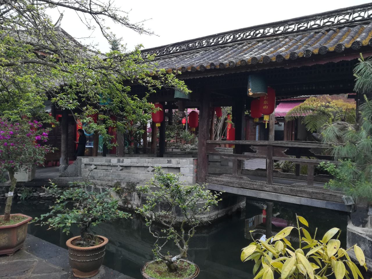 当然,如果对这个不感兴趣,可以来看看景色玉泉园附近的风情街,街边都是玉石翡翠铺子,家家都有赌石,如果好这个,这边就来对了。 当然,如果对这个不感兴趣,可以来看看景色。这边建筑有点江南小园林的感觉,曲水小桥,花木掩映,感觉不错。