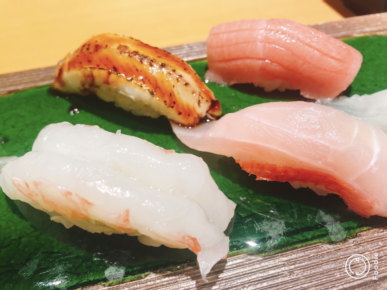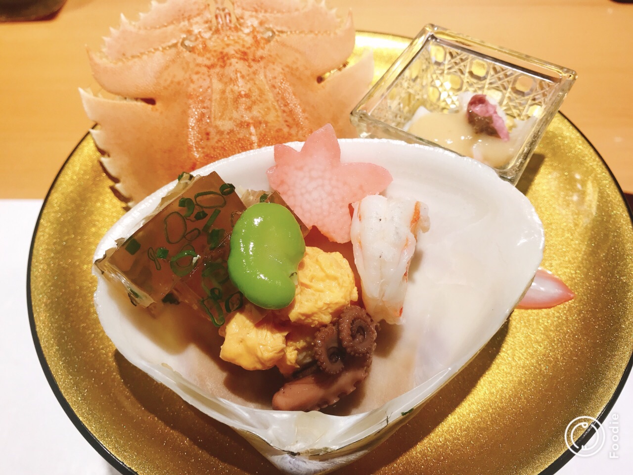 这是一家从环境、餐具到食材都让人感觉认真地专注于“吃”本身的一家店。门面并不起眼,仅有吧台与两个小包间,需要预定。菜单提供三种不同价位的排菜可供选择。一开始就被精致的餐位摆台和餐具吸引了,就着柔和的灯光,每一道菜都是一份精美的艺术品
