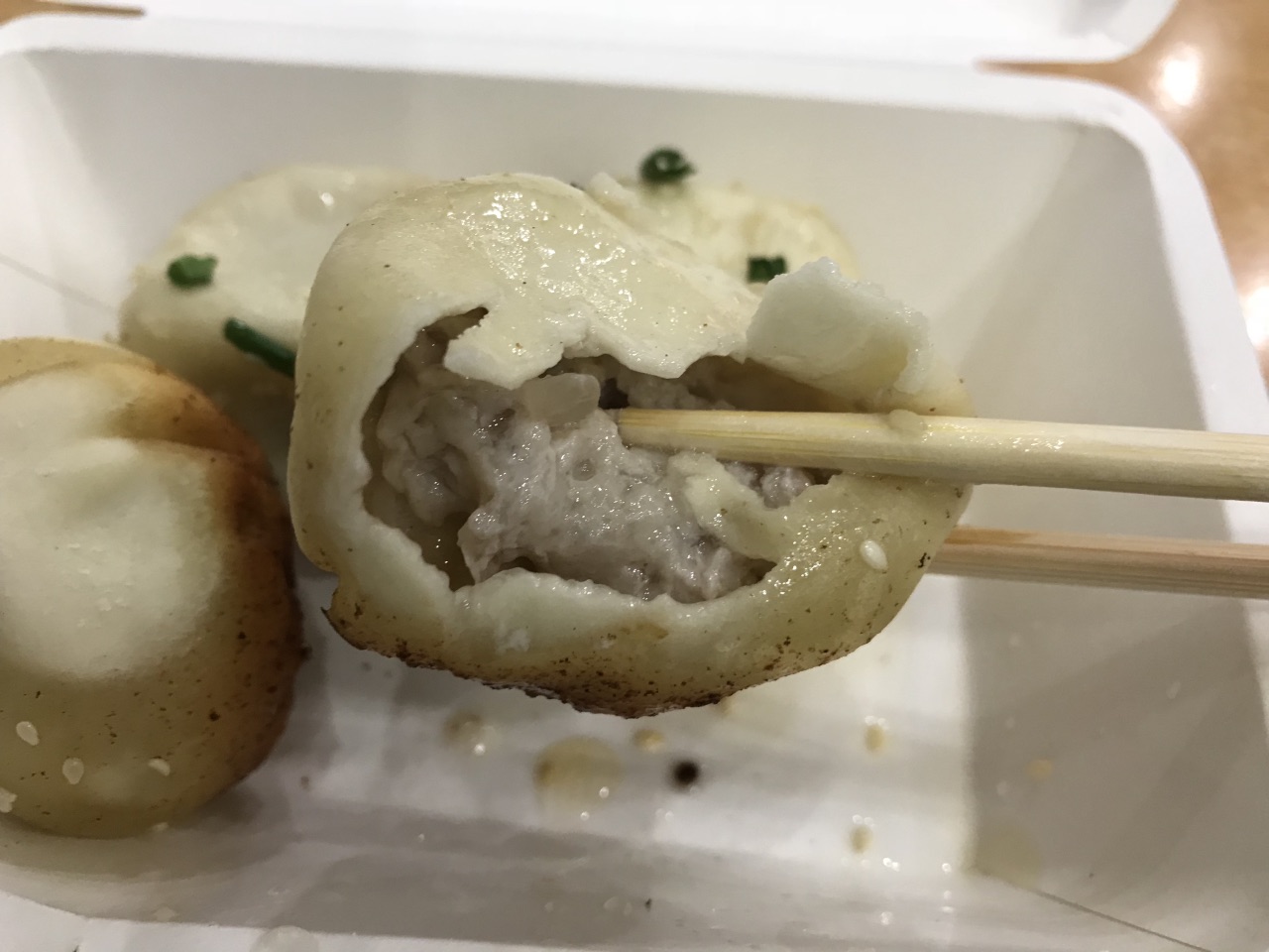 超出预期的好吃。 皮香韧,有嚼劲,肉汁汤很鲜甜。这世上怎么会有这么好吃的食物?在上海,杭州吃了很多很多小笼包,就是没吃过生煎,预感可能会很干,实在没想到生煎也可以像小笼包那些温润,甜美。这2.25一小块的生煎真的是一口难忘啊。推荐。推荐。