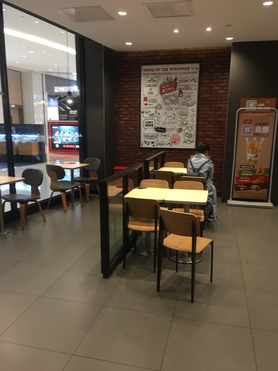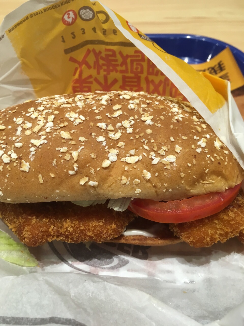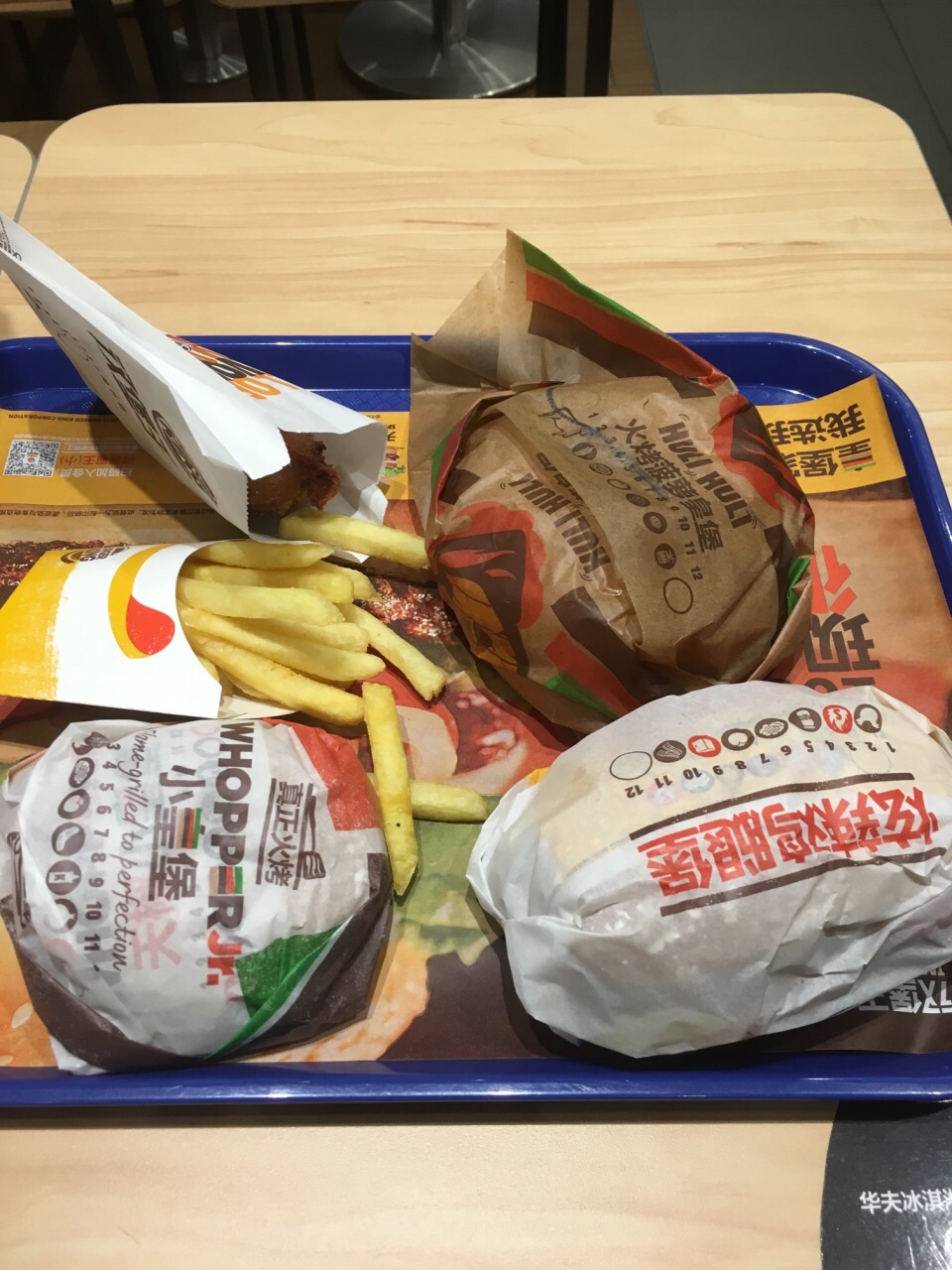 这次来万象城,就收特地为了汉堡王而来的,这是温州第一家汉堡王,店位于南白象街道温瑞大道999号温州万象城B1层B129-130号商铺,外观很醒目,装修的比较工业风,店里生意特别好,我等了好久才等到我点单,我团购了炫辣鸡腿堡,小皇堡,鸡腿,还有火烤菠萝皇堡;味道是真的不错,牛肉紧实,鸡腿堡的味道也还可以,辣度正好;鸡腿很入味,口感很赞,而且我注册了汉堡王新会员,他们又额外送了我一份小薯条。总体真的很棒!