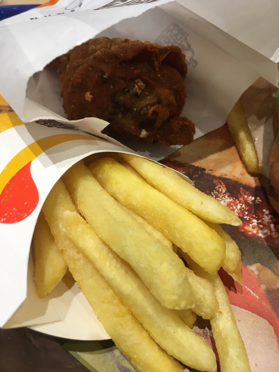 鸡腿很入味,口感很赞,而且我注册了汉堡王新会员,他们又额外送了我一份小薯条。总体真的很棒