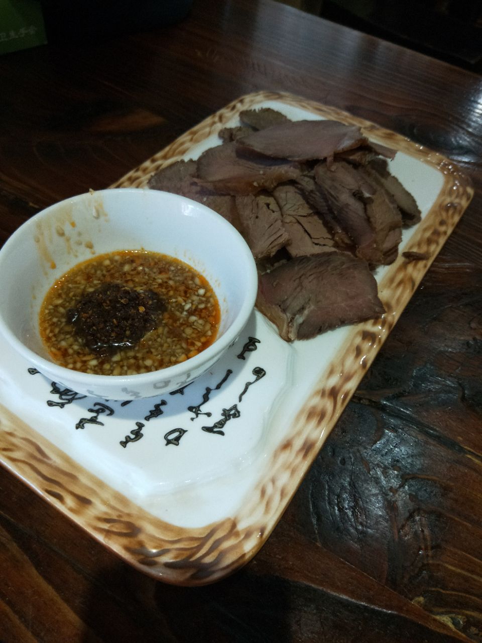 菜品是结合河南菜,山东菜和东北菜的北方菜,因为只有两个人,只吃了一斤酱牛肉,半斤牛肉饺子,一钵牛肉汤