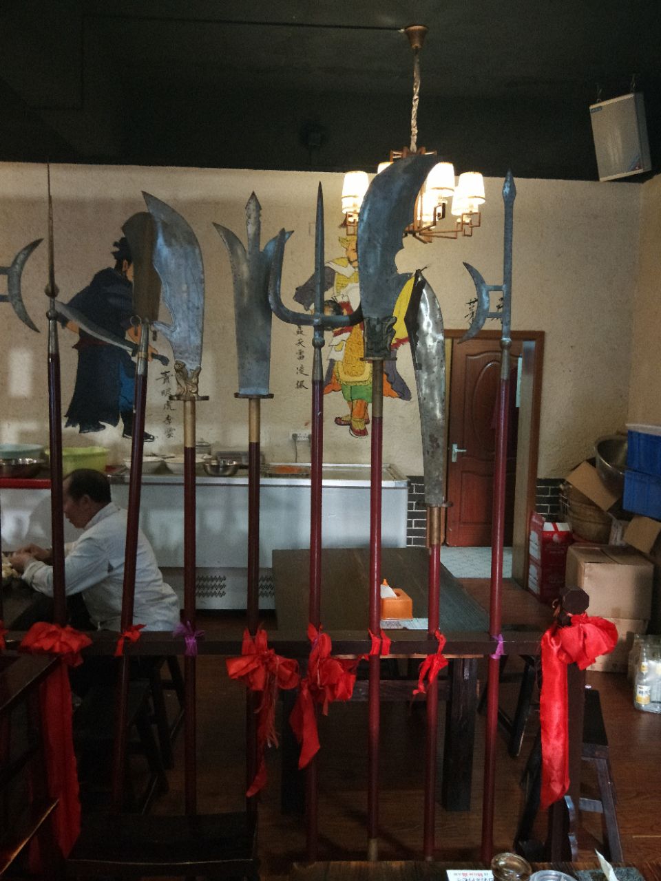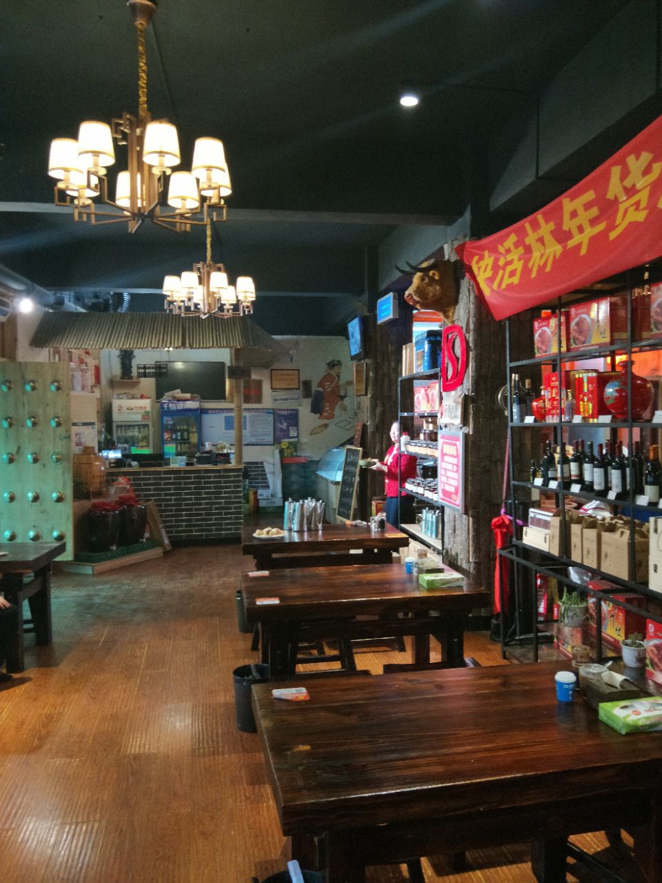 玩嵩山少林寺不可不去的一家店,水浒主题酒店,用兵器架,水浒人物墙画,大罐酒缸营造一个大碗喝酒,大口吃肉的气氛。菜品是结合河南菜,山东菜和东北菜的北方菜,因为只有两个人,只吃了一斤酱牛肉,半斤牛肉饺子,一钵牛肉汤,一盘香菇菜心,两瓶啤酒,其他菜品没有尝试。不过吃过的菜里觉得都不错,如住郑州大学体育学院附近的友人们可以走路过去!