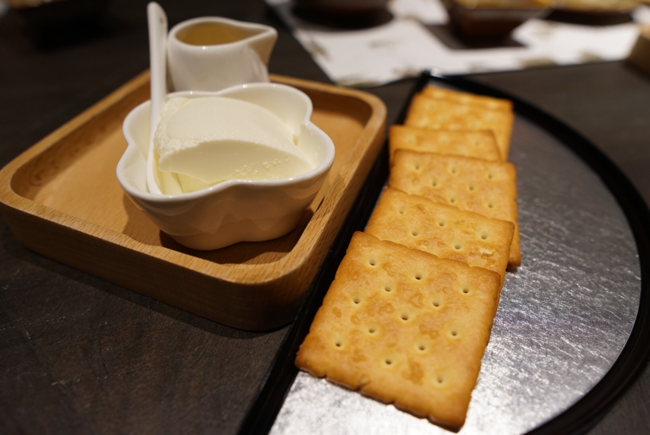 最后的甜品是料理长自制的奶油乳酪饼干,苏打饼干、自制乳酪加蜂蜜,搭配在一起产生了奇特的口感