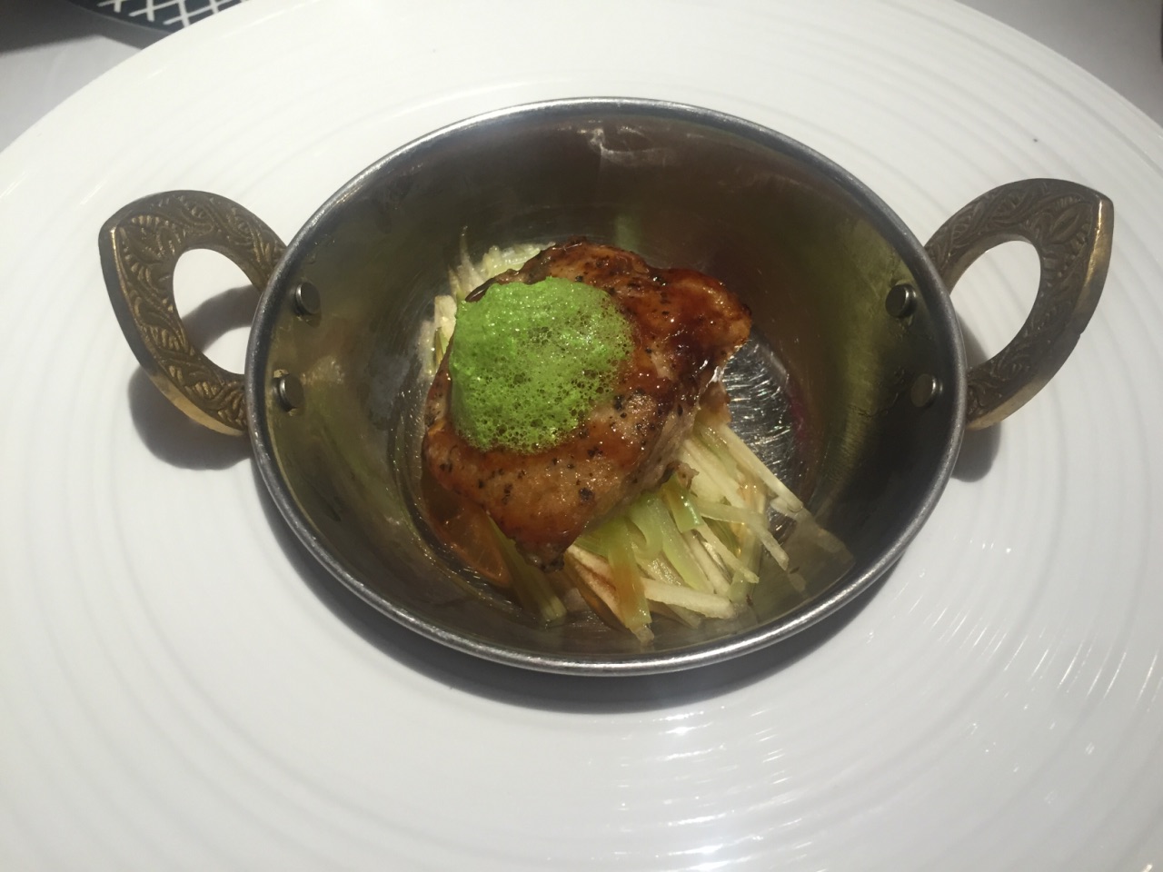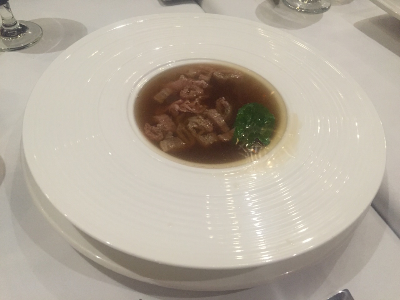 领导请客到单位边上的高大上的王品台塑牛排吃大餐,电梯上7楼,出来就看到了。这家店是杭州第一家王品,装修略显陈旧过时。服务员是一个腼腆的小鲜肉,服务很周到,但是上菜速度慢了些,他解释说都说厨师现做的,所以会比较慢。餐前酒甜甜的,很好喝。现烤的餐前面包热乎乎的。鹅肝沙拉入口即化,牛小排清汤很好喝。海陆大餐,摆盘很好看,台塑牛排很厚实,肉质鲜嫩,大虾和鳕鱼块很香。