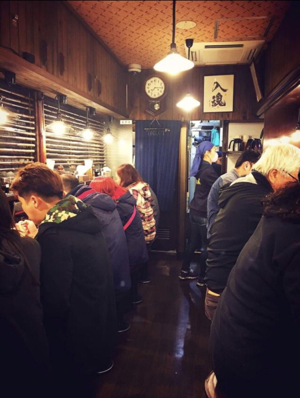 地铁池袋站东口往右方向徒步10分钟。这家是日本颇有名气的拉面店,因为只有18个位置,所以无论你什么时候去,基本都要排队! 我们在冷风中排队70分钟,但当喝到第一口汤时,瞬间觉得还是值得!浓郁猪骨汤底配上Q弹的面条,头牌拉面一碗下肚,满足得不行!尤其是看到海苔上的字,忽然有一种食客和食物灵犀相通的感觉!