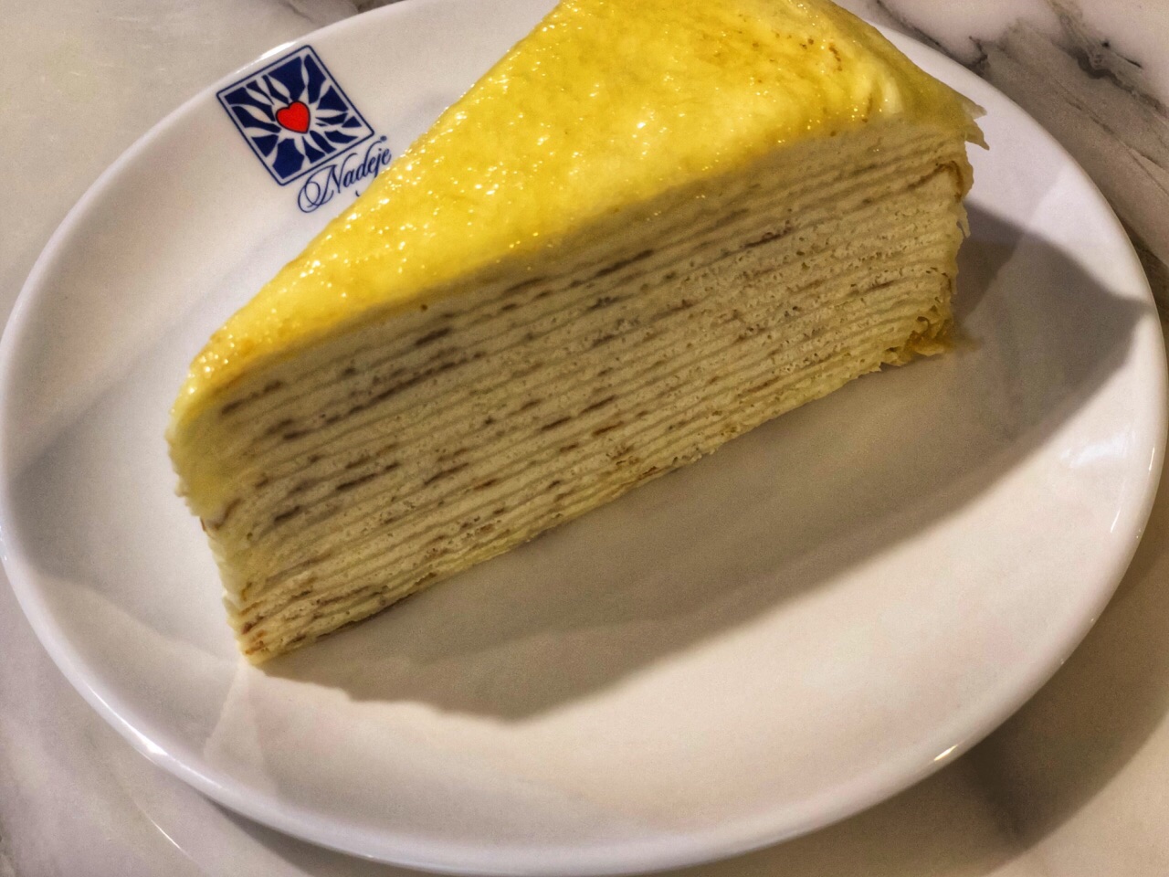 ☞假装在吃"Lady M”系列 nadeje是出自马六甲的千层蛋糕 在当地很有名 为了它 几经周转 点评原来的标记有误 店已关门(报错被驳回也是醉) 就在毫无头绪的时候 意外发现双子塔有分店 最新点评就在当天早上 恨没有早点看到 一行人本就打算吃完蛋糕去双子塔的 这下正好 阳光广场4楼(最顶层)还挺醒目的铺位 设堂吃座 千层均价11-15马币间 差不多人民币二十几元 可以说很性价比了 买了原味、朗姆酒、提拉米苏、芒果等五块蛋糕 饮料我选了柠檬水 这里的千层不腻 各有各的特点 最爱原味的 奶香浓郁又细腻 喜欢千层的可以来试试哦