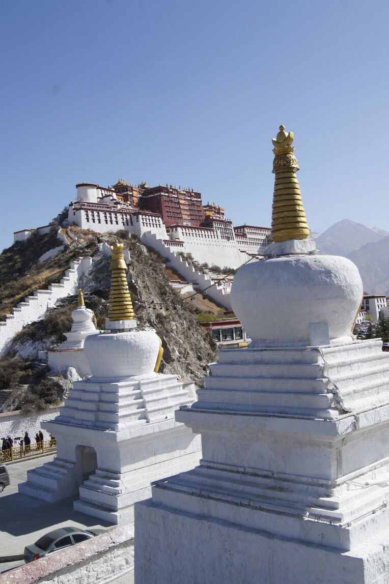 网友2018-04-22布达拉宫右侧,由三座藏式白塔组成,据说历史比布达拉宫还要悠久,由松赞干布的尼泊尔夫人所带来的工匠建造位于拉萨红山之下,布达拉宫右侧,由三座藏式白塔组成,据说历史比布达拉宫还要悠久,由松赞干布的尼泊尔夫人所带来的工匠建造。