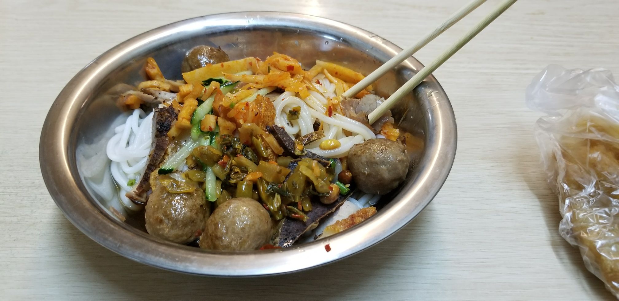 饼太油腻了,吃了两口就没吃了。环境不怎么样味道还是那种臭臭的味道,好久没吃了,加了个内丸和饼总共13元,味道就那样吧,不知道为什么会推荐,难道就是因为便宜吗。环境不怎么样。饼太油腻了,吃了两口就没吃了。