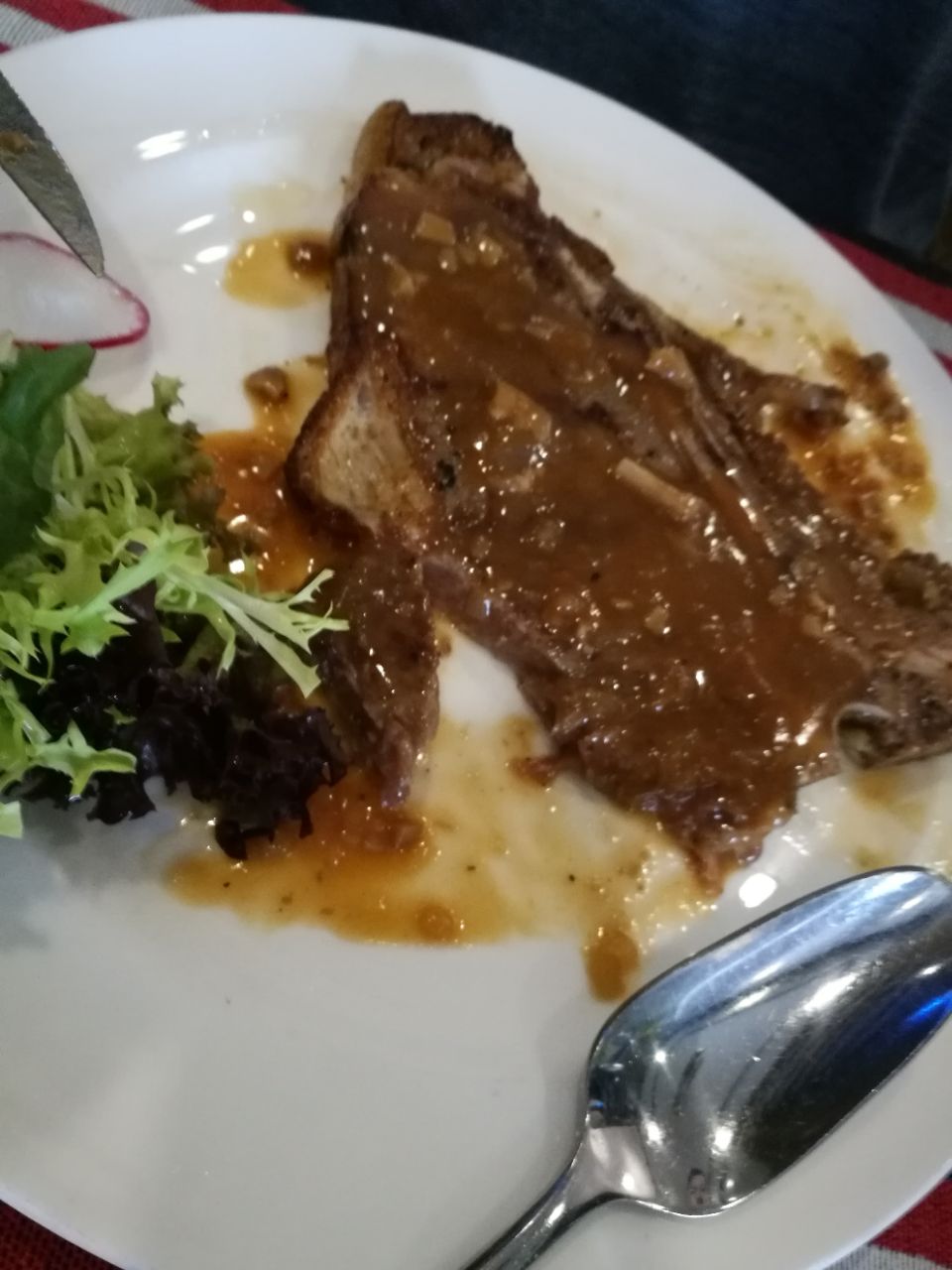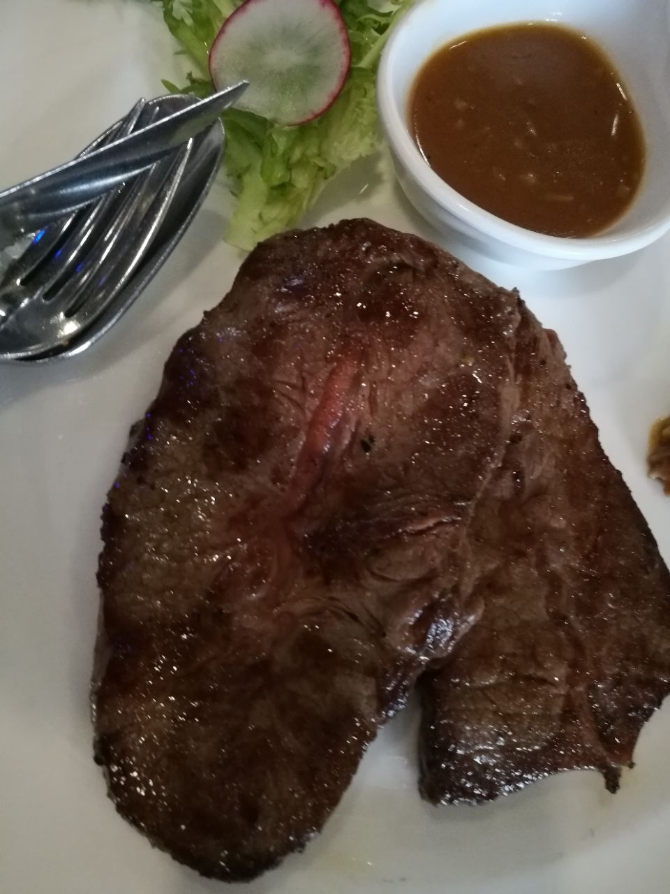 今次到这家西餐厅就餐,刚好遇到美国牛排节优惠活动,每位点餐超过88元的,就可以马上享用自助餐,当然这个自助餐只有水果蔬菜沙拉和面包糕点和几款布丁,我们点了罗宋汤、安格斯T骨和安格斯牛排,煎的牛排在较好。消费费270元。