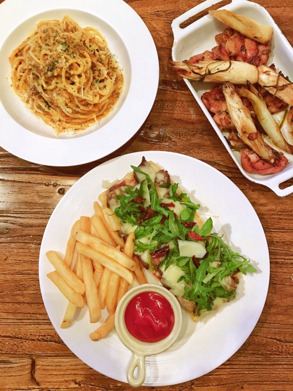 时隔一年多再来洋厨房,还是一样的环境一样的菜量一样的味道! 【奶油蘑菇汤】不用多说!必点的!配上他家自制黄油香蒜面包,出奇的好吃! 【洋厨房混合沙拉】真的是超超超超大一份!内容也很丰富,两个人真的有点吃不掉,酱有点淡淡的黄芥末,口感很棒! 【法式焗蜗牛】放在香蒜面包上,一口就能搞定![馋嘴] 【香草大葱烤鸡肉】别看大葱的个头大,但是烤熟了相当好吃!鸡肉不得不说,超嫩的!酱汁完全融入了!淡淡的甜~ 【烤牛肉鹅肝法式面包】这是他家的新品!一定要点!!!!如它的名字,牛肉和鹅肝满满,上面撒上芝麻叶和蔓越莓干~赞[污] 【熔岩蛋糕】虽然是经典甜品,但是必须还要再提!爆浆!满满的巧克力熔岩,流出来了!!![鼓掌][鼓掌][鼓掌] 白堤路果然是美食聚集地,各种好吃的! 【洋厨房】