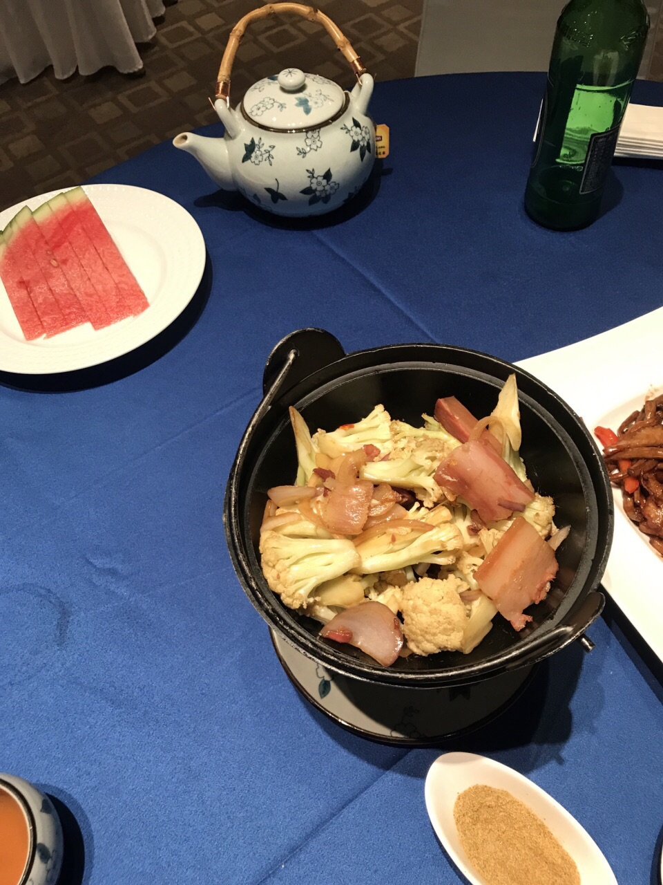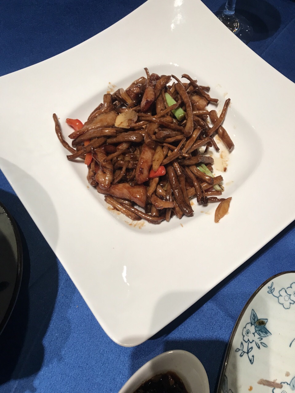 椒盐牛肉片难吃爆了 ,超级干 如果你蘸着 椒盐一起吃 简直吞不下去,是怎么登上美食林的?其余俩个菜就茶树菇炒爽肉 真的是可以说好吃,有机花菜炒咸肉 花菜很生,我知道是为了它在干锅里头闷热一下 所以那么生。另外叫了 天麻老鸭汤 很好喝。就这样了 你们自己考虑吧哈哈 ,再说说服务,五星级酒店来说 管理不行,我刚一坐下,服务员就说 你坐另外一张台吧 就我一个服务员 你坐的离我远 怕照顾你不来你们这桌。