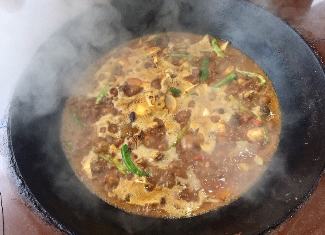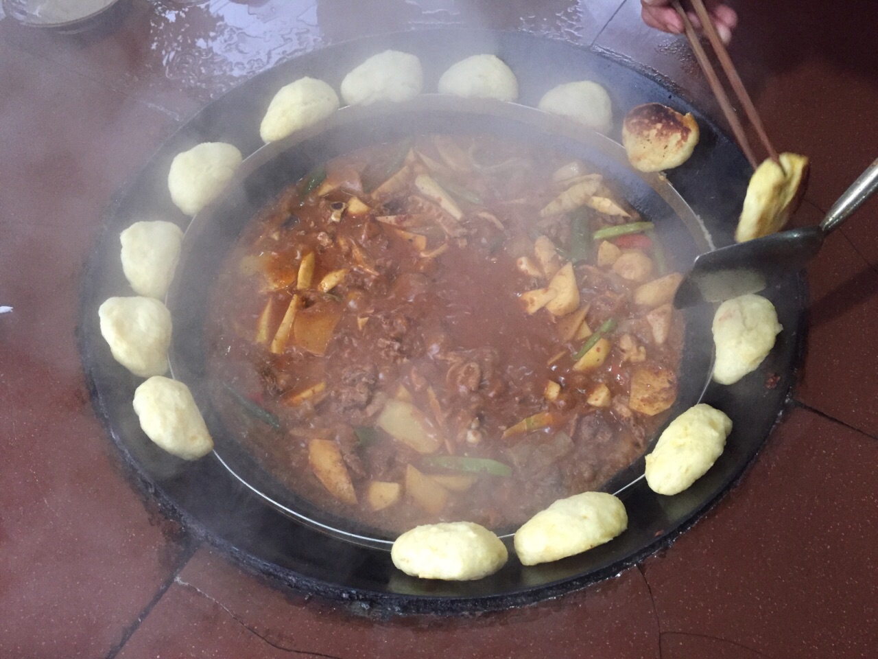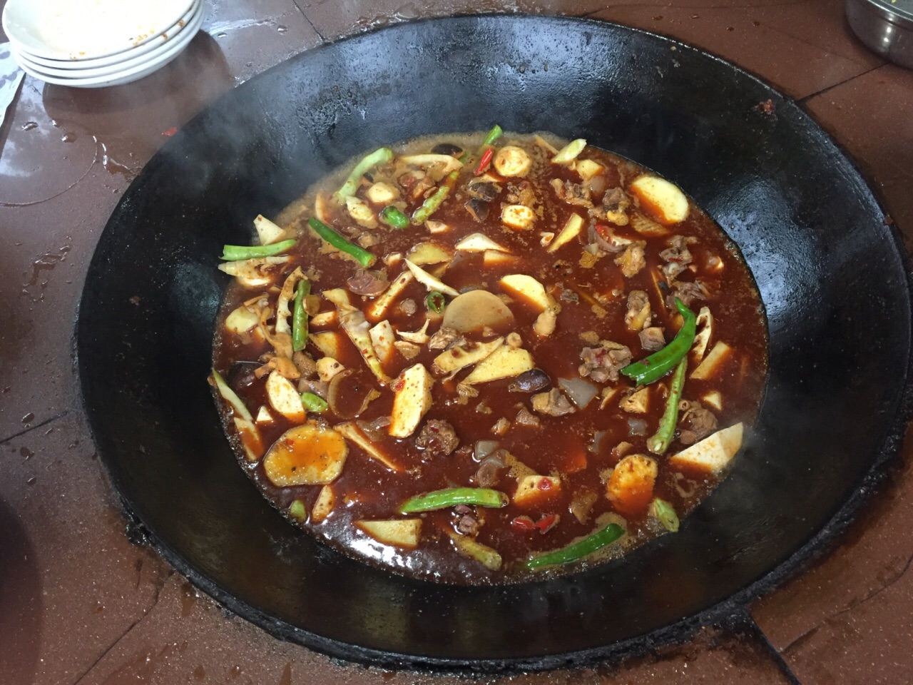 这次去成都玩,要不是温江的朋友带去这家位于芙蓉大道的柴火芋儿鸡店,是不会品尝到用土锅、土灶、柴火烧的鸡。柴火鸡的做法是放花椒、干辣椒、香料等佐料把鸡块炒香,放芋儿、土豆、豆角、魔芋、笋、粉条等辅料,再加水盖锅焖熟,然后贴上一圈锅边馍,接着就可以开吃了。鸡肉麻辣香嫩,非常入味,各种辅料也很好吃,再搭配着锅边馍,美味极了!