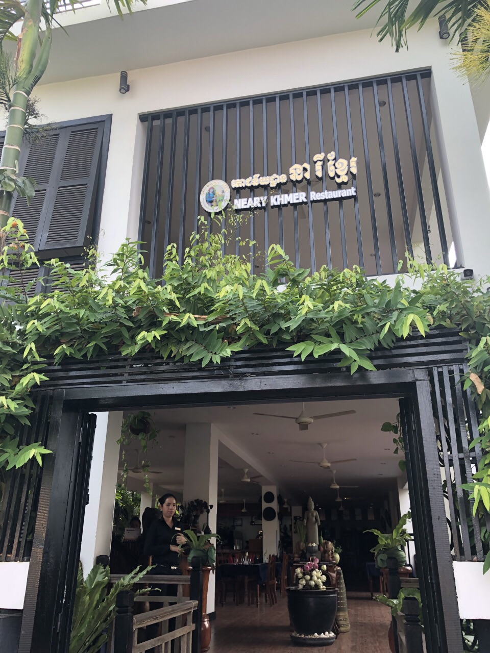 暹粒。去机场路上,让司机帮我们找一家吃饭的地方,就带到了这里,下午四点也在营业,很大,而且里面的大间里开了空调,在暹粒炙烤的阳光下,尤为重要。 点了炒饭,烤鸡,洞里萨鱼,味道还不错,有啤酒、威士忌提供。人均10美金。