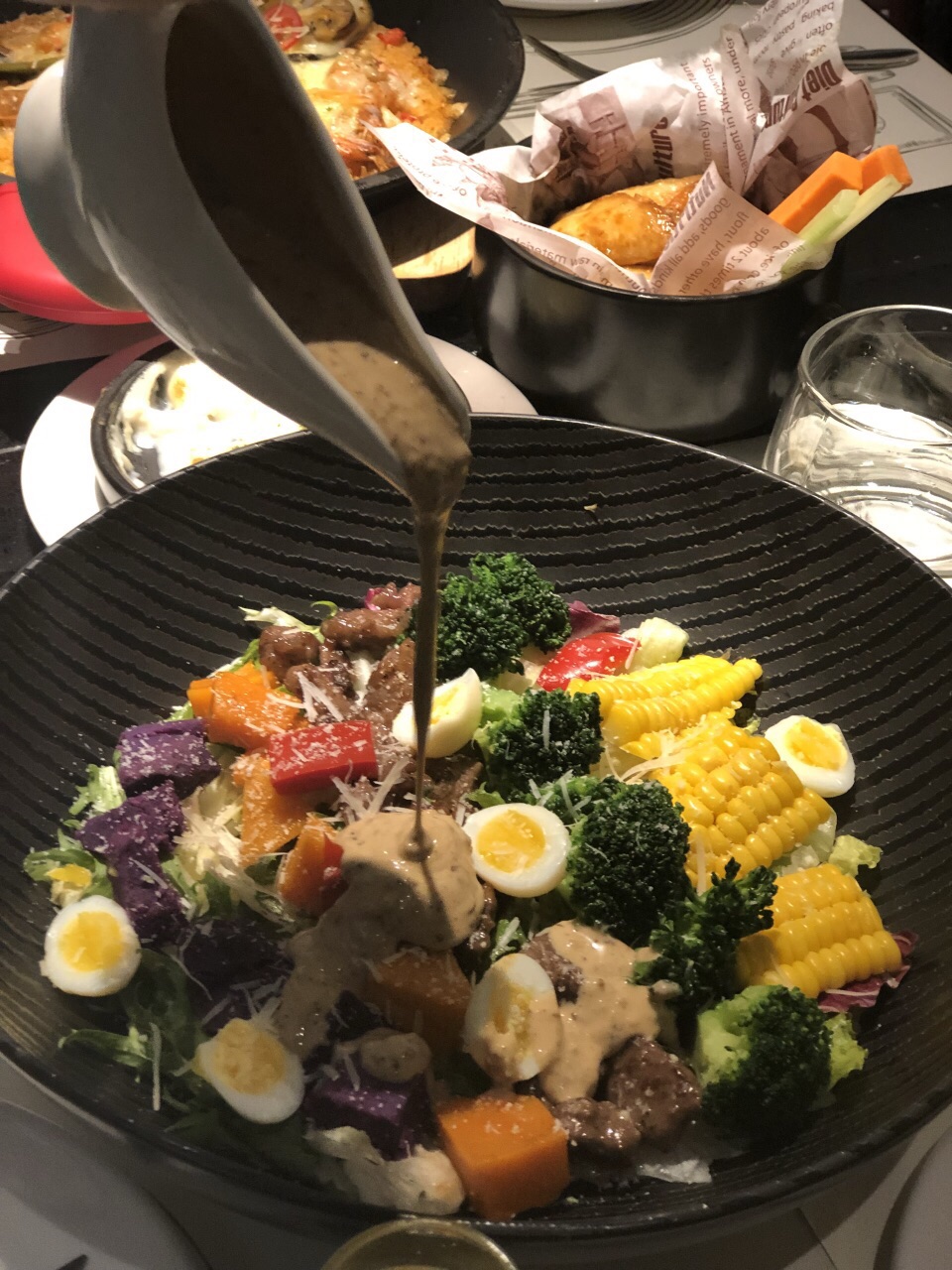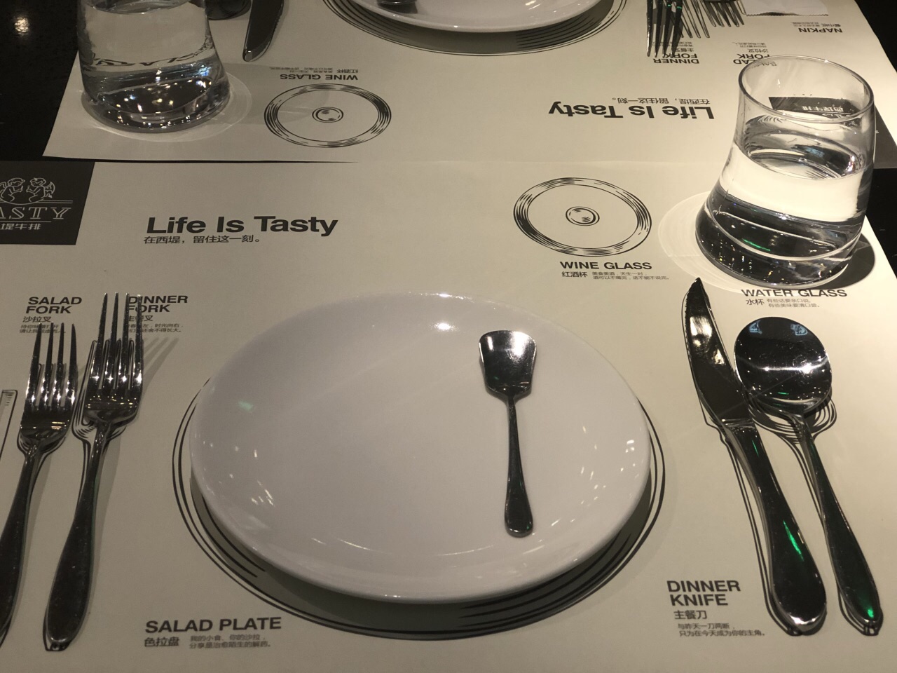 对Tasty有很深厚的感情,非常清楚地记得大二也不知道大三是在南京路的新世界开的第一家店,虽然价格对于当时学生来的我说不便宜,但是也是精致西式套餐里可以承受的那个时候感受三道式的牛排,体验很好,这是王品旗下的牛排馆,很注重服务,于是记住了,每个重要的日子都会把他家放在考虑的list上,很有仪式感的餐厅。 而今那么多年过去了,再来美罗城的这家西堤却是不一样的感觉,风格变得简易化了,可以单点,可选品种更多。这样的话桌位更多,也没有以前那么难订了。但是经典的东西却保留了下来。比如以前套餐里前菜的面包,别的店家配的是黄油,而他家确实配像浓稠蘑菇奶油汤的沾料,而且可以续加,即使空口吃也好吃得不行,我一不小心吃掉个2人份 再说说牛排,怎么可以这么好吃!虽然方式变成了单点但是肉的品质却没有打折,还比以前更好了,点的推荐第一的,集四国优质牛肉为一盘少许撒盐就很好吃,牛肉本身原汁的味道就很入味,关键那个嫩吃完了我才发现原来有黑椒汁,根本不用蘸取。吃了意犹未尽。也是以前吃套餐时最期待的甜品雪芭,沿用过来,不是很甜吃口爽口解腻棒棒的。还点了其他小食鸡翅也很棒,还有甜品的巧克力蛋糕,就是融滑的巧克力。 [服务]换盘上菜都很勤快,仍然沿袭西餐店的品质。即使现在墙上也清晰地写着记住你每一个重要的时刻,在这里连免费餐品都那么好吃,真的值得来过纪念日