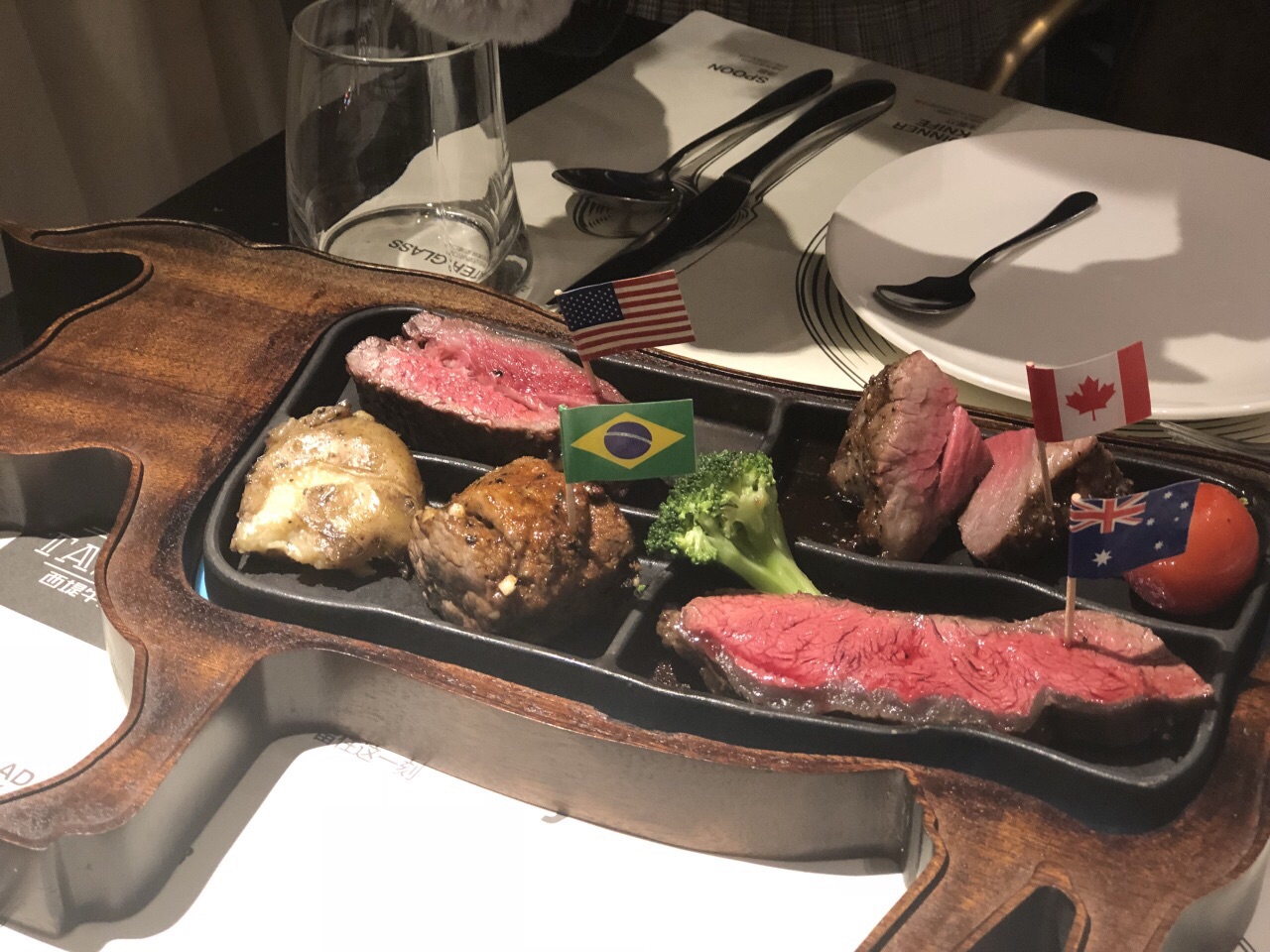 点的推荐第一的,集四国优质牛肉为一盘少许撒盐就很好吃,牛肉本身原汁的味道就很入味,关键那个嫩吃...