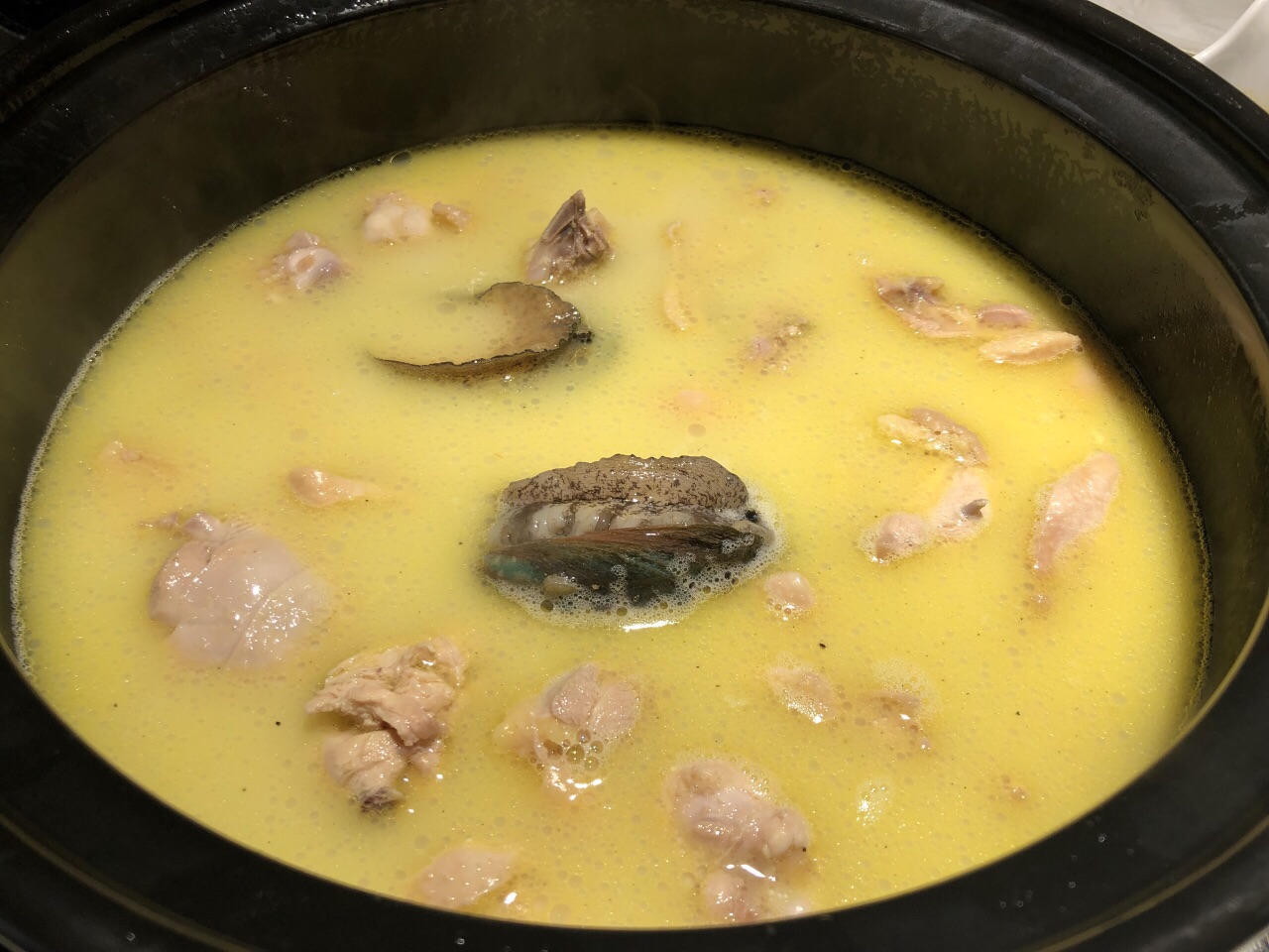 不过喝完原汤,第二次再加的汤就明显差很多了,小鲍鱼很新鲜,端上来的时候还在不停蠕动,汤里煮完口...跟无锡吃的鸡包渔是同类型的,汤是用砂锅盛放的,汤更浓郁,不过喝完原汤,第二次再加的汤就明显差很多了,小鲍鱼很新鲜,端上来的时候还在不停蠕动,汤里煮完口感鲜嫩弹性十足,价格实惠,值得常来!